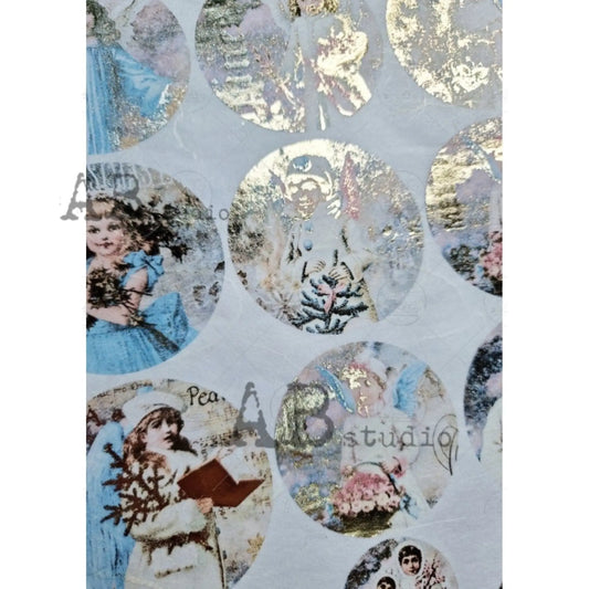 AB Studio Vintage Children Color Gold Gilded Rice Paper A4 No. 1021 Size: A4 - 8.27 X 11.69 inches Rice Paper for Decoupage Imported Poland