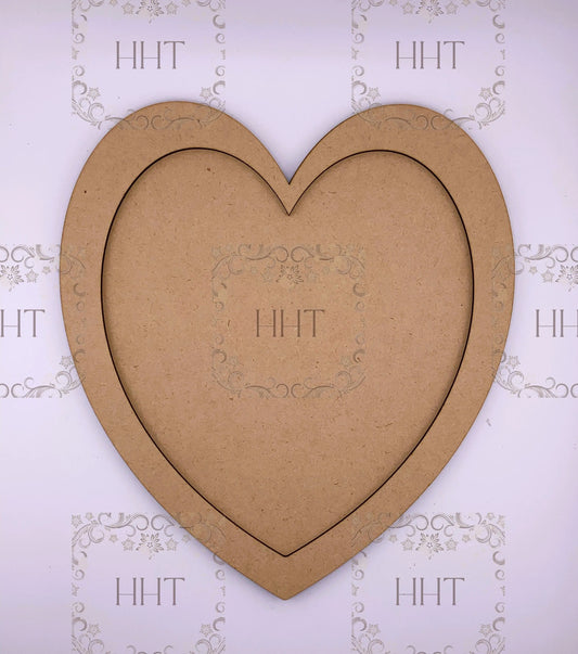 Laser Cut MDF, Framed, Large, Heart, Plaque, Panel, Frame, Overlay, Blank, Base, Craft, 2 pc, Decoupage, Mixed Media, 9 x 10 inch 1/8"