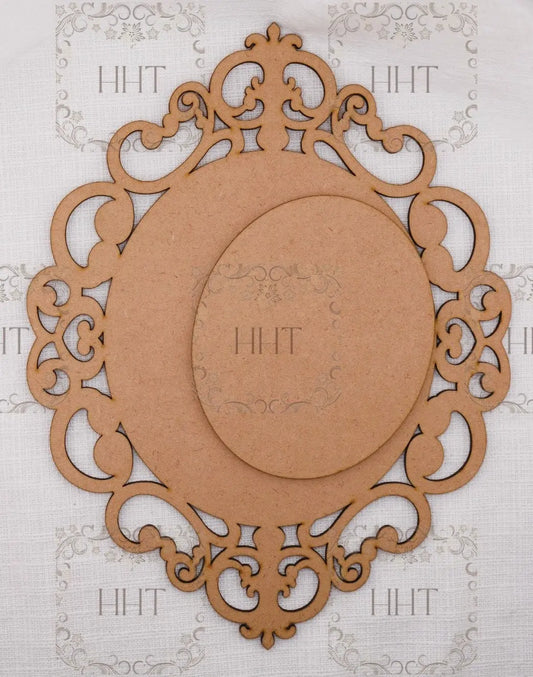 Laser Cut MDF, Base, Blank, Plaque, Center, Oval Overlay, Wall Decor, Panel, 2 piece blank, Decoupage, Mixed Media, 8 x 10 in, 1/8 inch