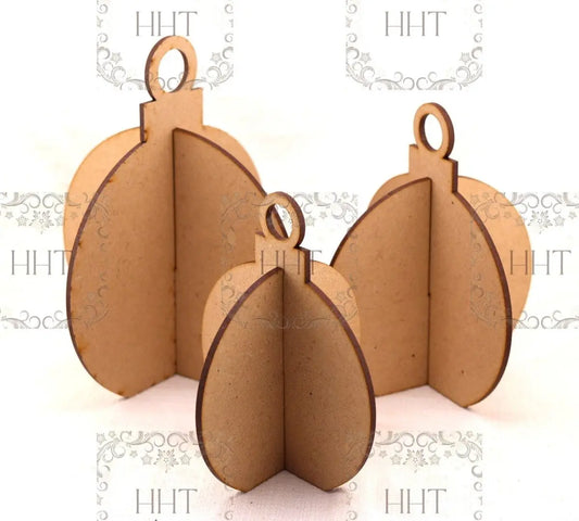 Laser Cut MDF Vintage Style Christmas Pendant Ornament Base, Blank, 3-piece Set for Decoupage, Crafts, Mixed Media,, 6h x 5.5w in, 1/8