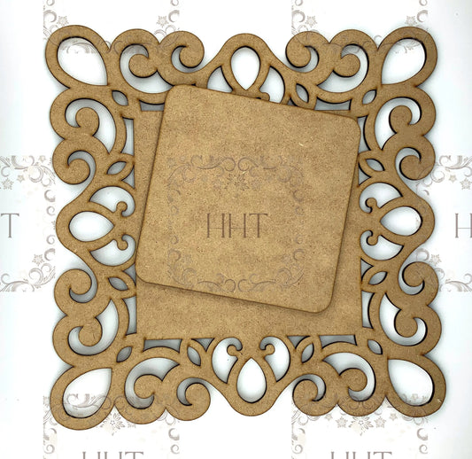 Laser Cut MDF, Vintage Style Wood Base Blank Overlay Plaque, Panel, 2 pc, Decoupage, Mixed Media, 2 Sizes, 9.5 x 9.5 in, 8.5 x 8.5 in 1/8 in