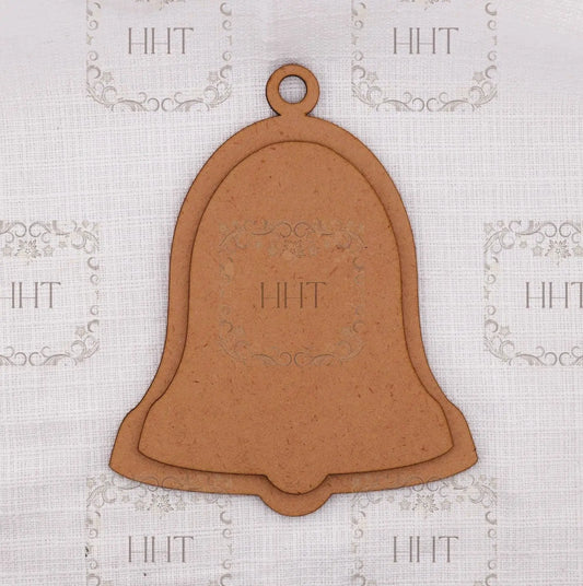 Laser Cut MDF, Holiday, Bell, Christmas Ornament, Blank, Base, Canvas, Overlay, 2 pc, Decoupage, Mixed Media, 6" x 7.75", 1/8" thick