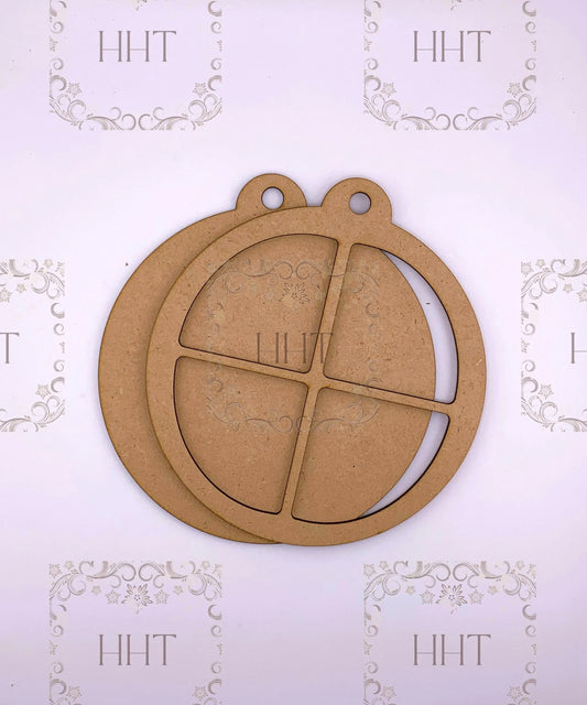 Laser Cut MDF, Christmas, Circle, Ornament, Base, Blank, Windowpane Overlay, 2 pc, Decoupage, Mixed Media, 6" x 6.5", 1/8 in thick