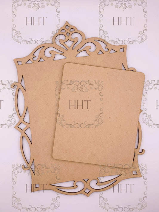 Laser Cut MDF, Vintage Style, Pendant, Ornament, Blank, Base, Center Overlay 2 pc, Decoupage, Crafts, Mixed Media, 6 x 9 , 1/8