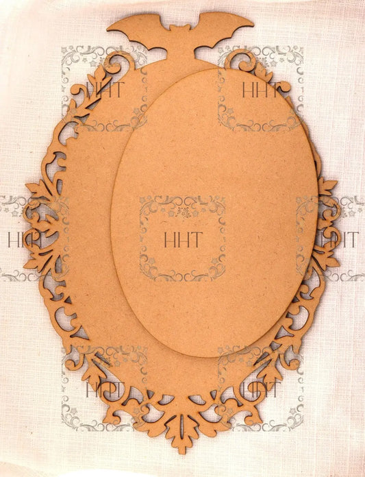 Laser Cut, MDF, Blank, Base, Plaque, Ornament, Center Overlay Oval, 2 pc, Decoupage, Mixed Media, Vintage Style, Halloween, Bat, Wall Art