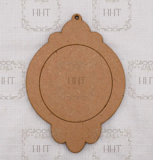 Laser Cut, MDF, Vintage Style, Pendant, Ornament, Blank, Base, Oval Overlay Center, 2 piece, Decoupage, Mixed Media, Crafts, 4" x 7"