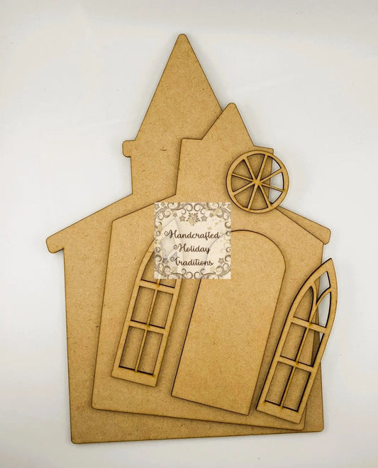 Laser Cut MDF, Church, Blank Base, Decoupage, Mixed Media, Crafts, 6 pieces, Plaque, Panel, 12" x 8.75" inch, 1/8" thickness