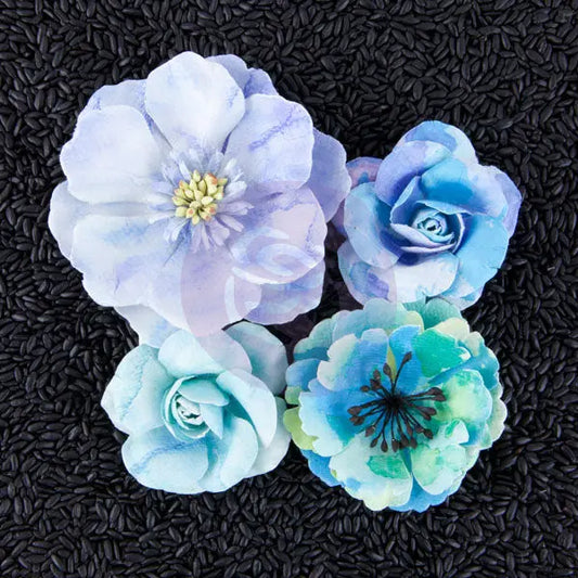 Prima Marketing, Paper Flowers, Aquamarine, Blue, Roses, 4 pc Mix, Scrapbooking, Mixed Media, Crafts, 582616