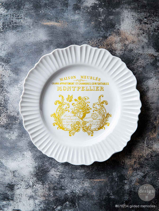 Re-Design with Prima, H2O Transfers Gold, Gilded Memories, 2 sheets, 8.5″x11″, Metallic, Rub on Transfers, Parisian, Typography, Crests