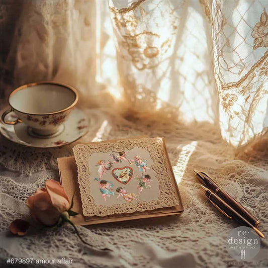 Re-Design with Prima, Small, Rub On Transfers, Amour Affair, Victorian Hearts, Cherubs, Roses, Valentines, 3 sheets, 6″x12″, Crafts