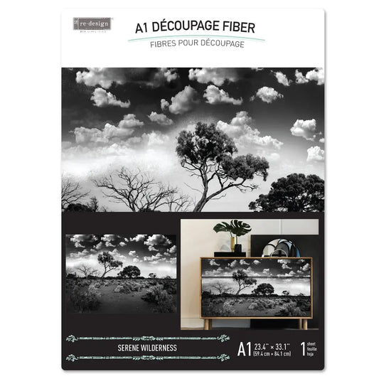 Re-Design with Prima, Decoupage Fiber Paper Set, Serene Wilderness, Black and White, Landscape, 1 sheet, 23.4″x33.1″