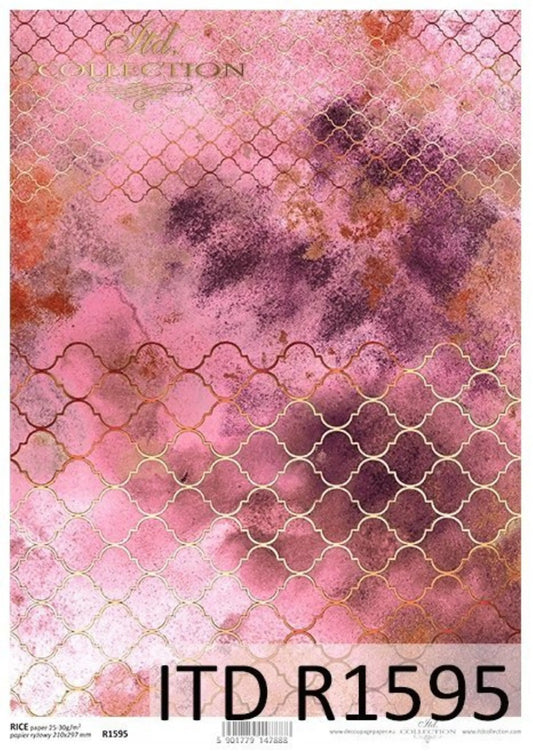 ITD Collection Rice Paper for Decoupage R1595 Size A4 - 210x297 mm, 8.27x11.7 inch Moroccan clover, oriental style, wallpaper, rose gold