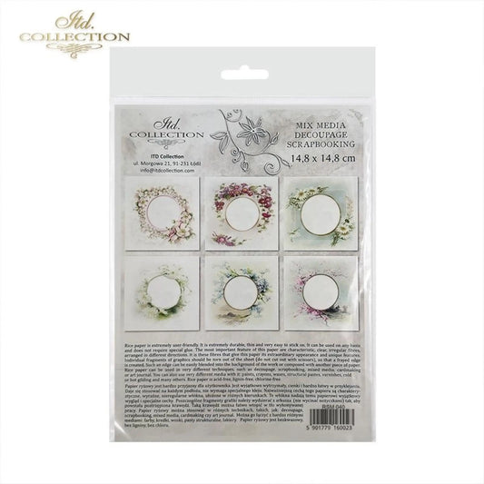 ITD Collection Rice Paper Mini Set for Decoupage RSM040, 6 sheets of rice paper 14,8x14,8 cm, Floral Frames, Spring Flowers, Frames