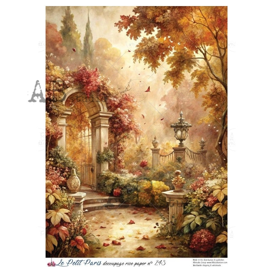 AB Studio, Rice Paper, Christmas, La Petit Paris, Leaves, Garden, Autumn, Landscape, Fall, A4 8.27 x11.69, Mixed Media, Decoupage NO243