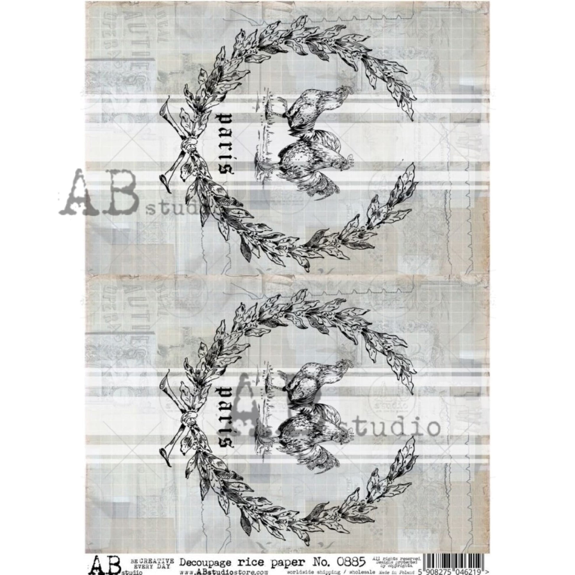 AB Studio Shabby Chic, Hens, Chickens, Paris, Feed sack, #885, A4 - 8.27 X 11.69 inches Rice Paper for Decoupage Imported from Poland