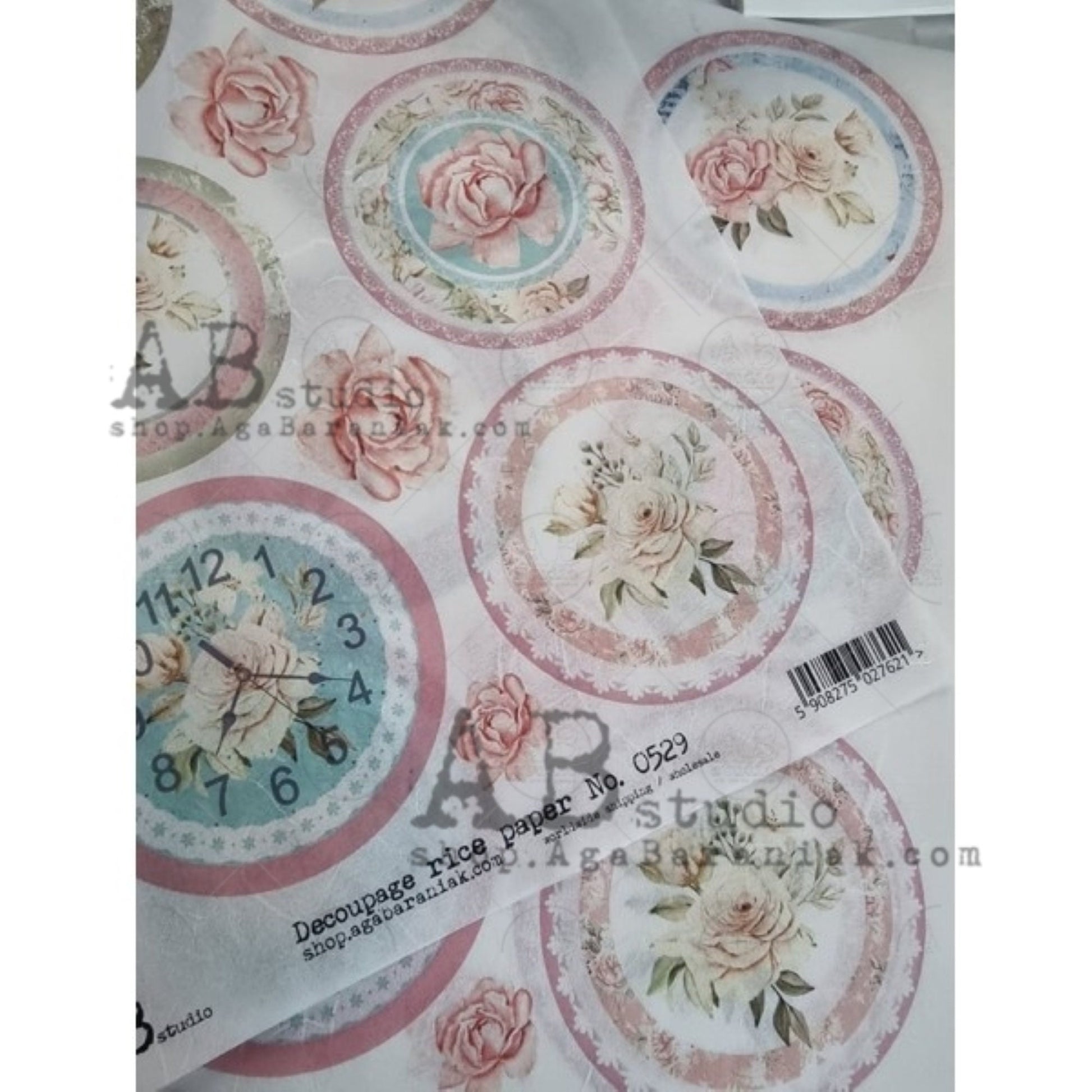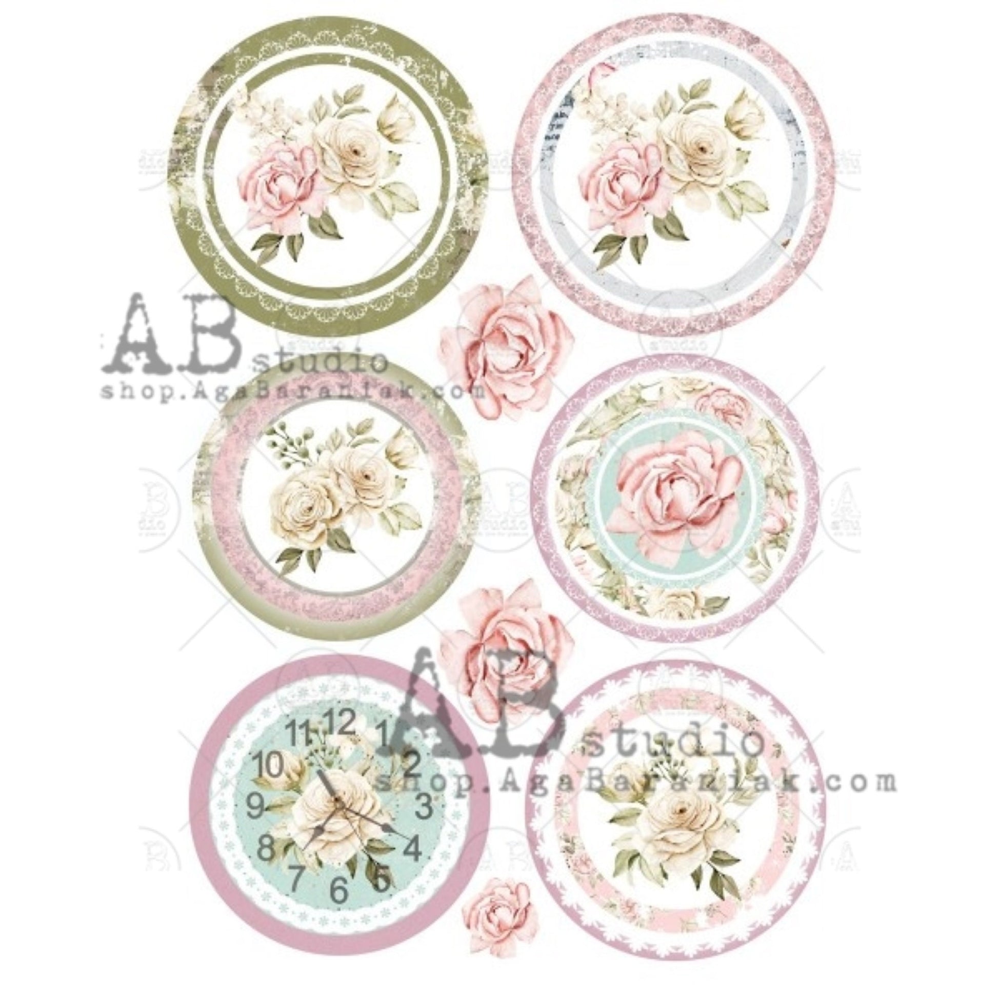 AB Studio Shabby Chic Roses Rounds Rice paper A4 No. 0529 Size: 8.27 X 11.69 inches Rice Paper for Decoupage Imported from Poland