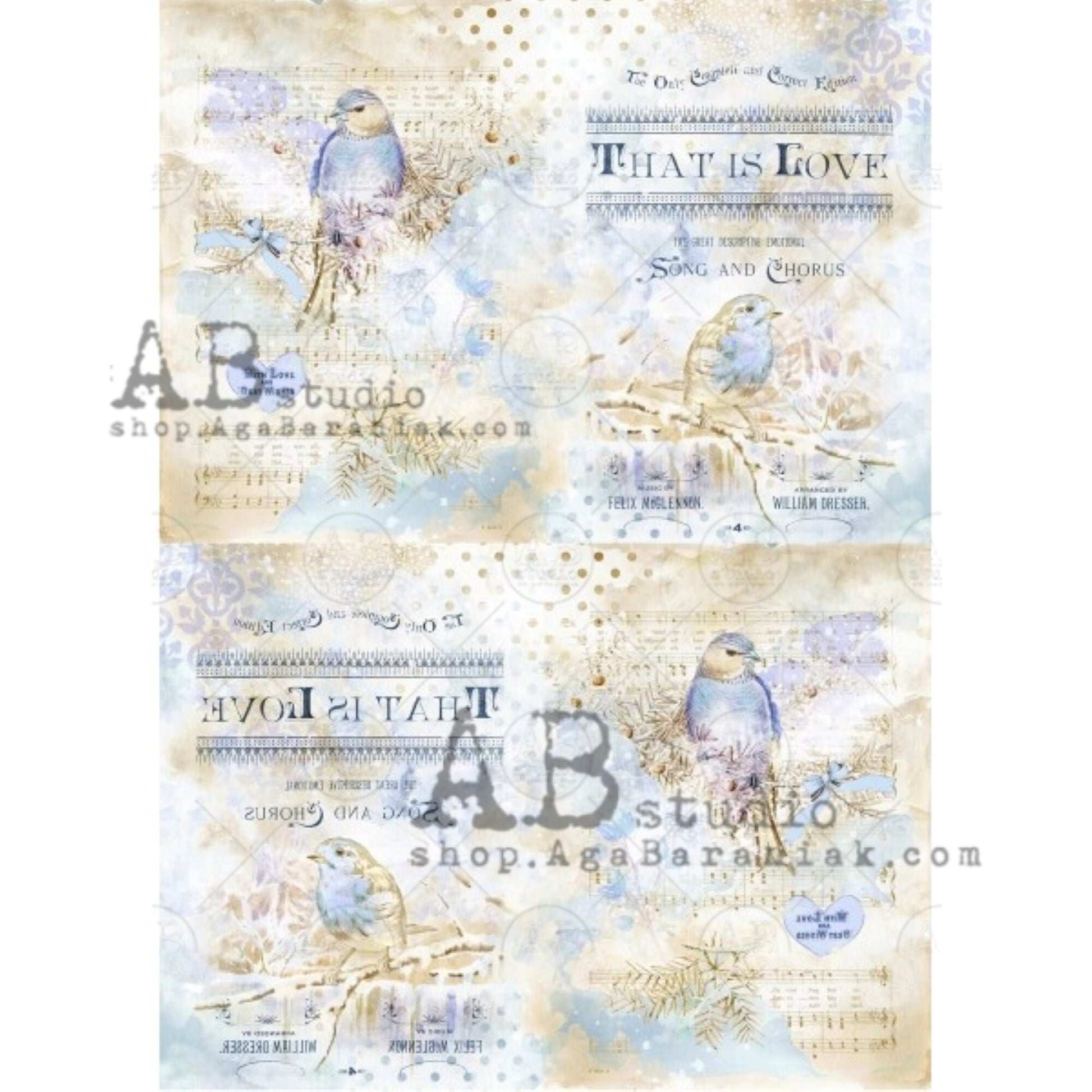 AB Studio Shabby Chic Vintage Love Birds Squares 0362 Size: A4 - 8.27 X 11.69 inches Rice Paper for Decoupage Imported from Poland.