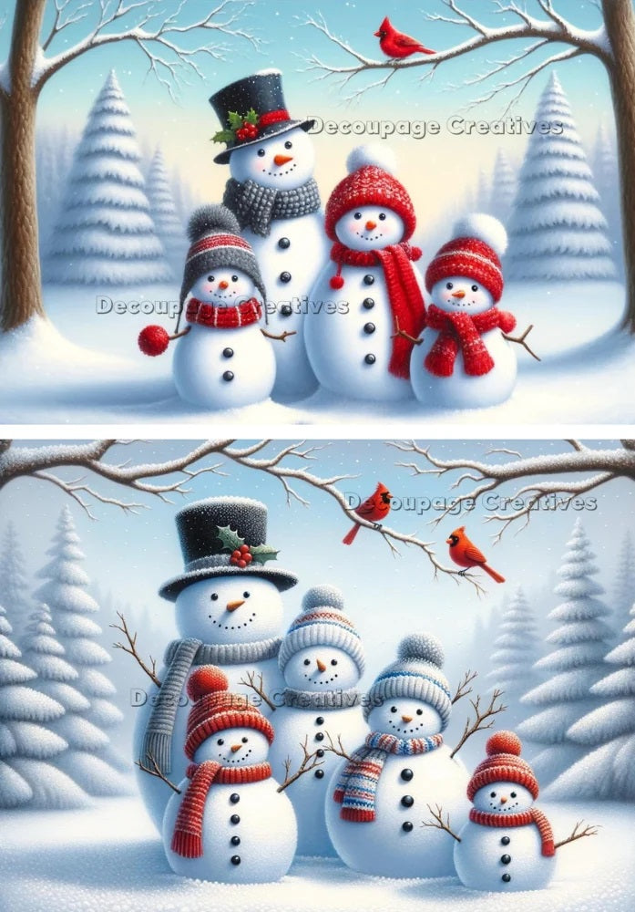 Decoupage Creatives, Rice Paper, Snow Family, Winter, Forest, Cardinal, Snowman, Mixed Media, Christmas, A4 8.27 X 11.69, DPD625