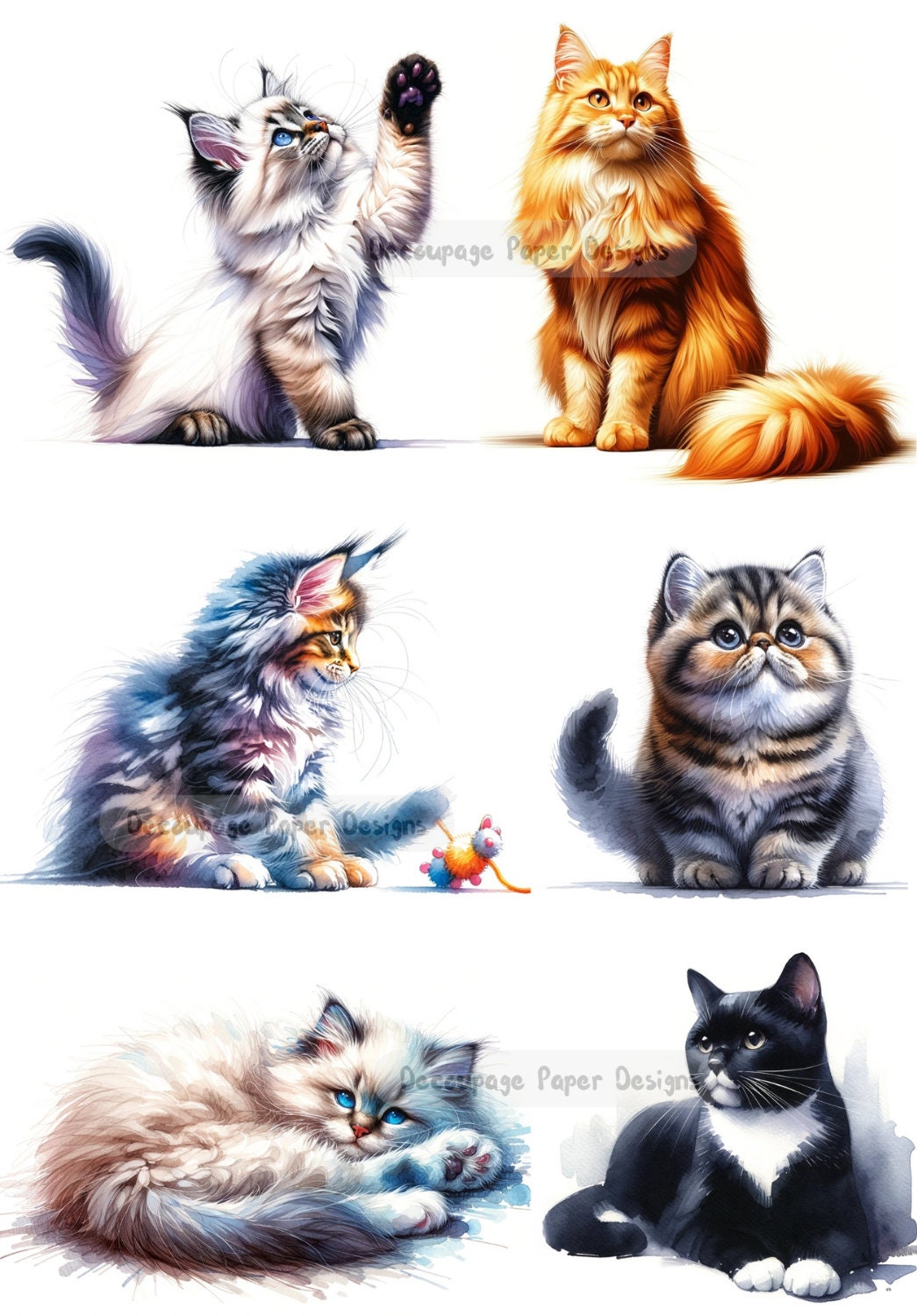 Decoupage Creatives, Rice Paper, Pretty, Kittens, Cats, Rounds, Ornaments, Mixed Media, A4 8.27 X 11.69 DPD287