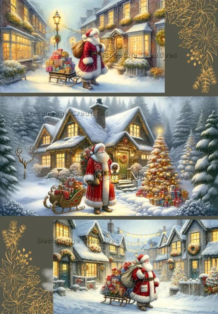 Decoupage Creatives, Rice Paper, Santa Claus, Santa, Town, Street, Winter, Snow, Mixed Media, Christmas, A4 8.27 X 11.69, DPD632