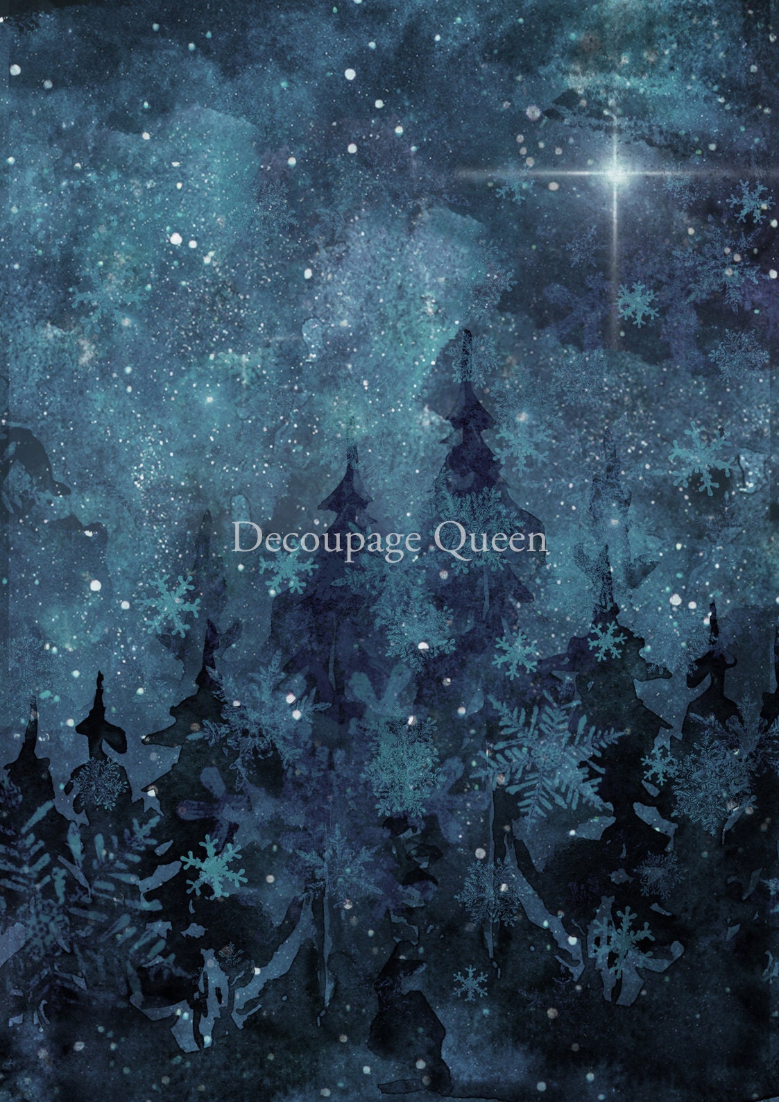 Decoupage Queen, 2023 Winter Release, Christmas, Rice Paper, A4 8.27 X 11.69, Blue, Night Sky, Background, Wallpaper, 0530