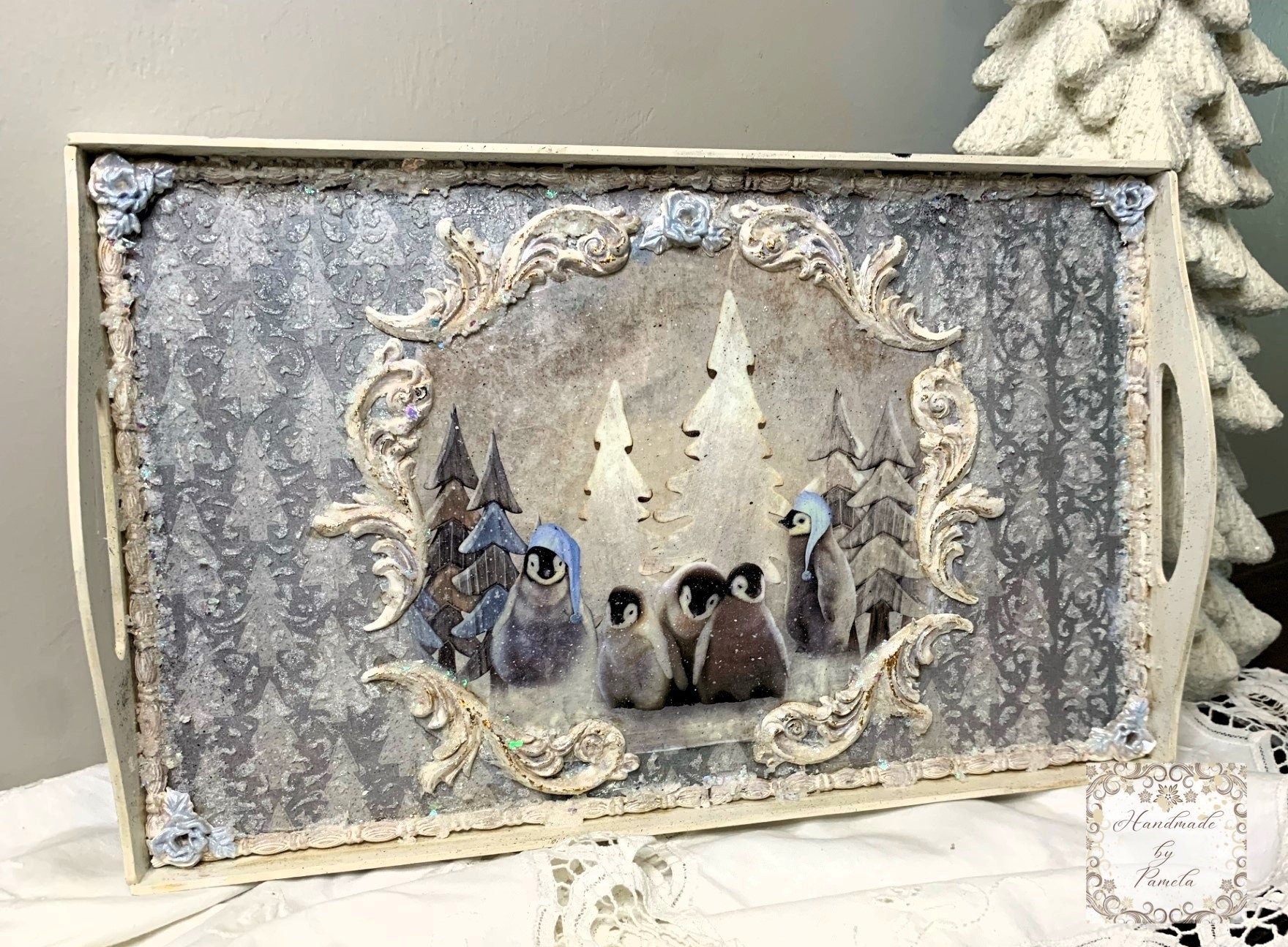 Decoupage Queen, 2023 Winter Release, Christmas, Rice Paper, A4 8.27 X 11.69, Penguin, Family, Snow, Trees, 0534
