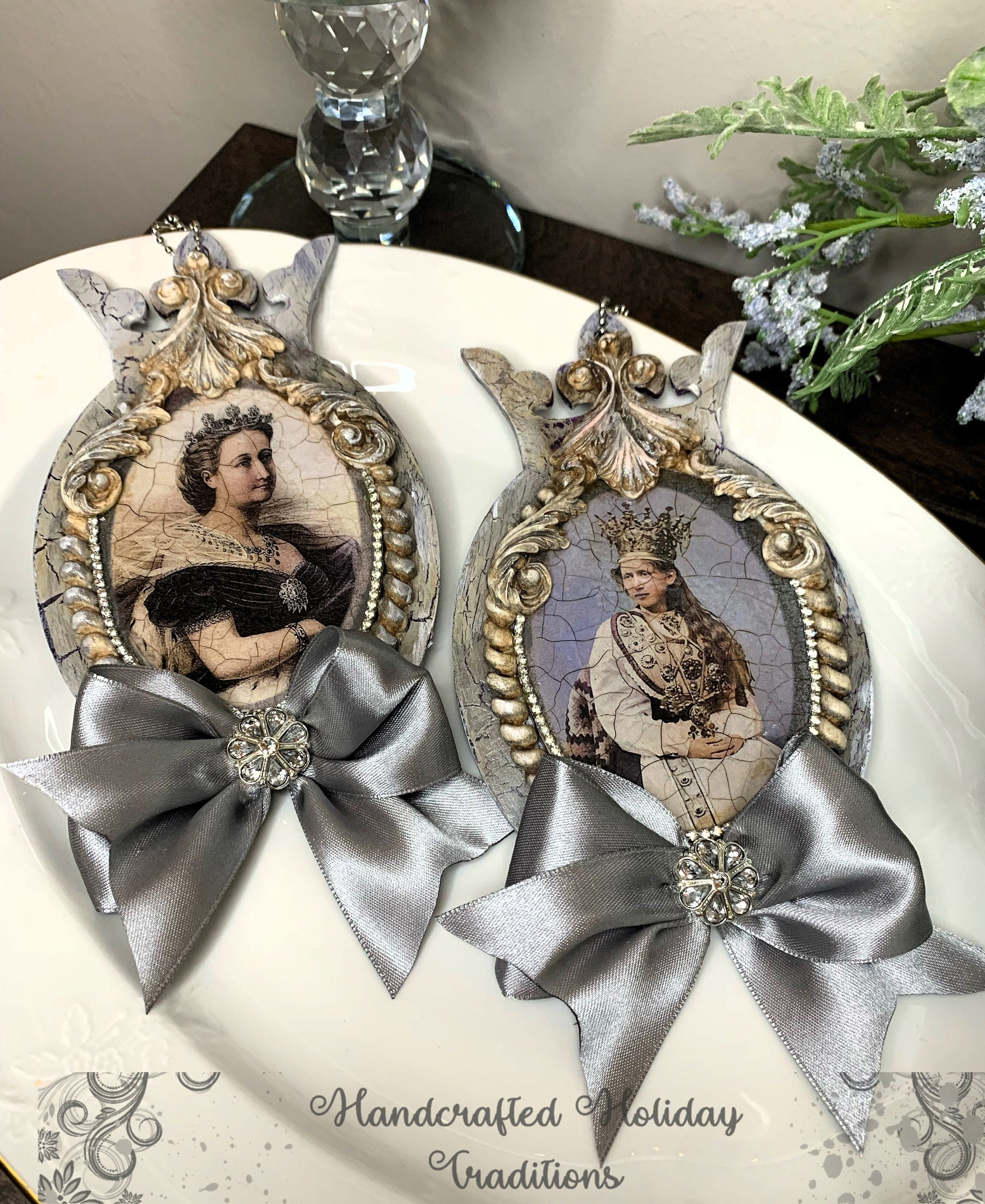 Ornaments and MDF Crown Ornament base for inspiration and sold separately.