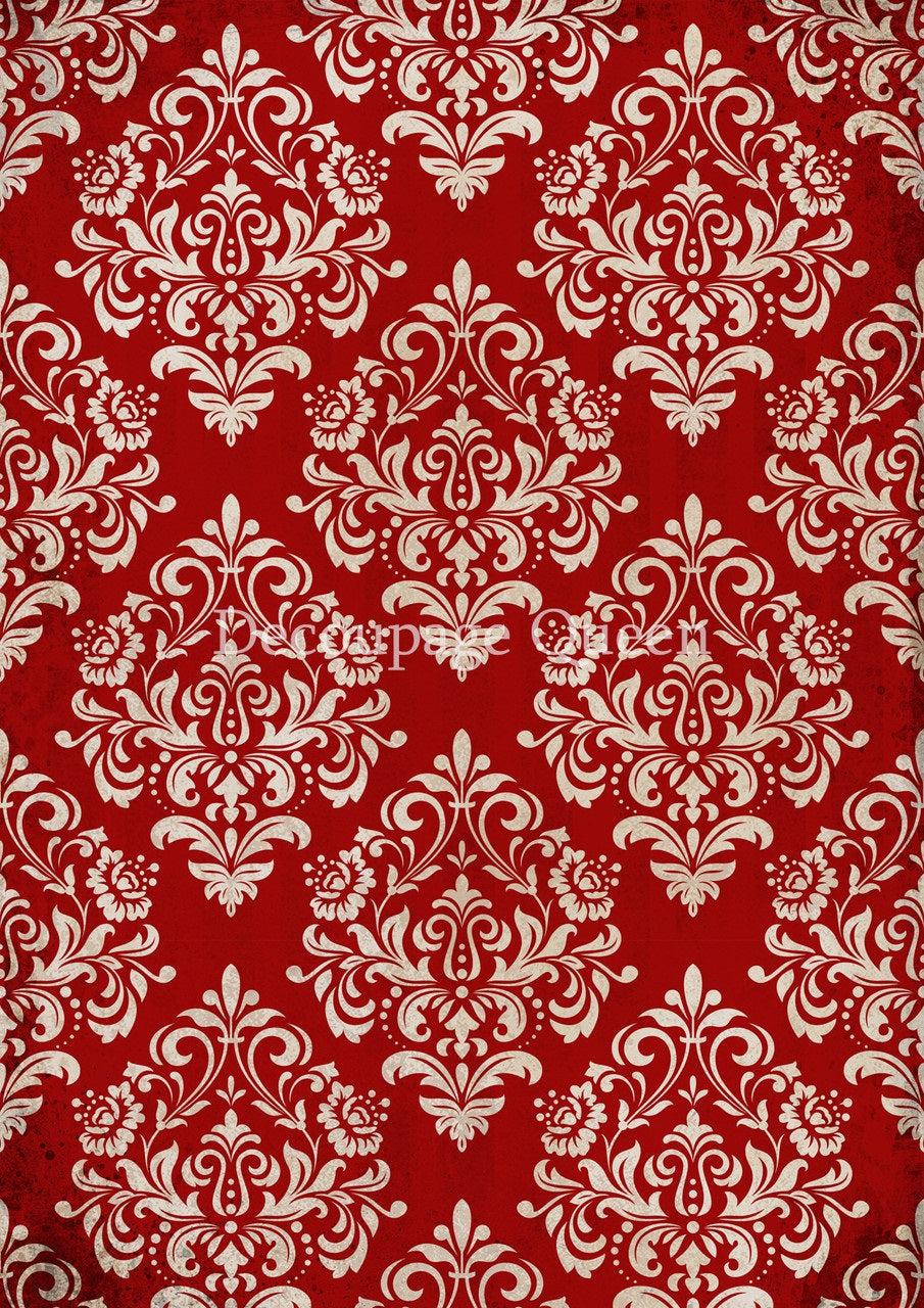 Decoupage Queen, Rice Paper, 2024 Winter Release, Vintage Style, Christmas, Red, Cream, Damask, Background, Wallpaper, Vintage Style, A4