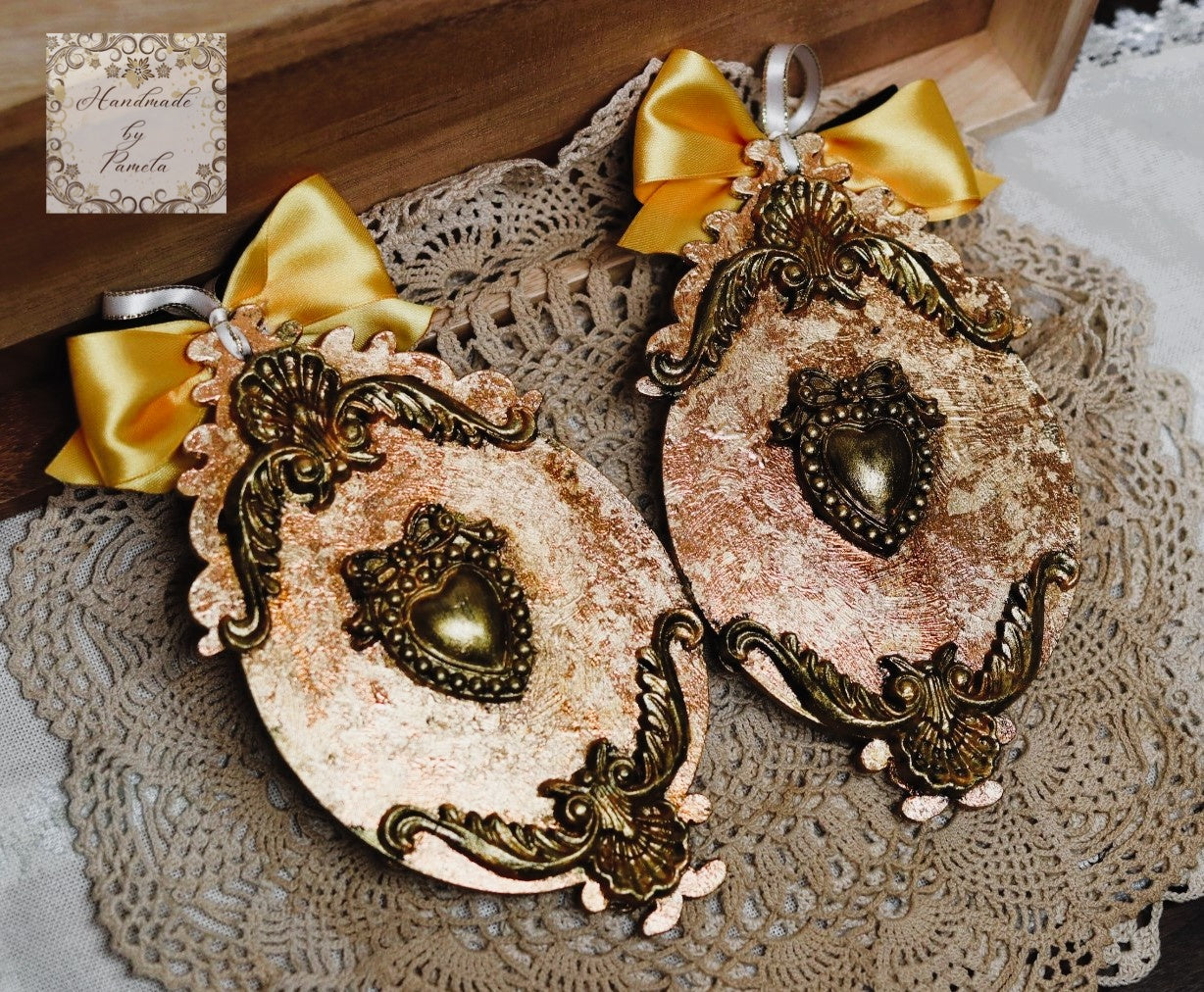 Handcrafted Holiday Traditions presents Vintage Antique style Set of 2 Christmas Ornament handmade by Pamela.