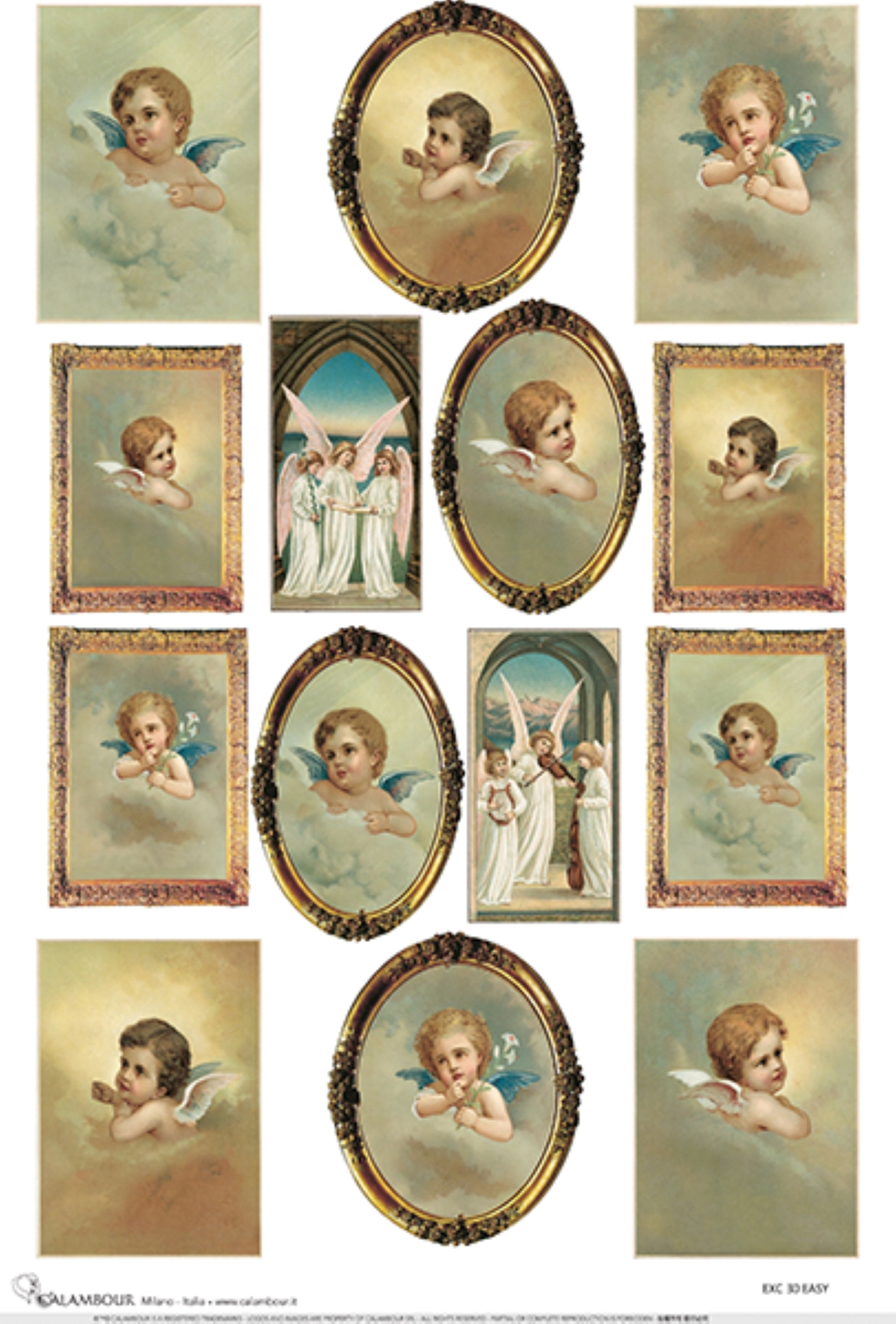 - Vintage style rice papers from Calembour with cherubs, angels decoupaged on the front and coated with glossy varnish and flecks of gold.