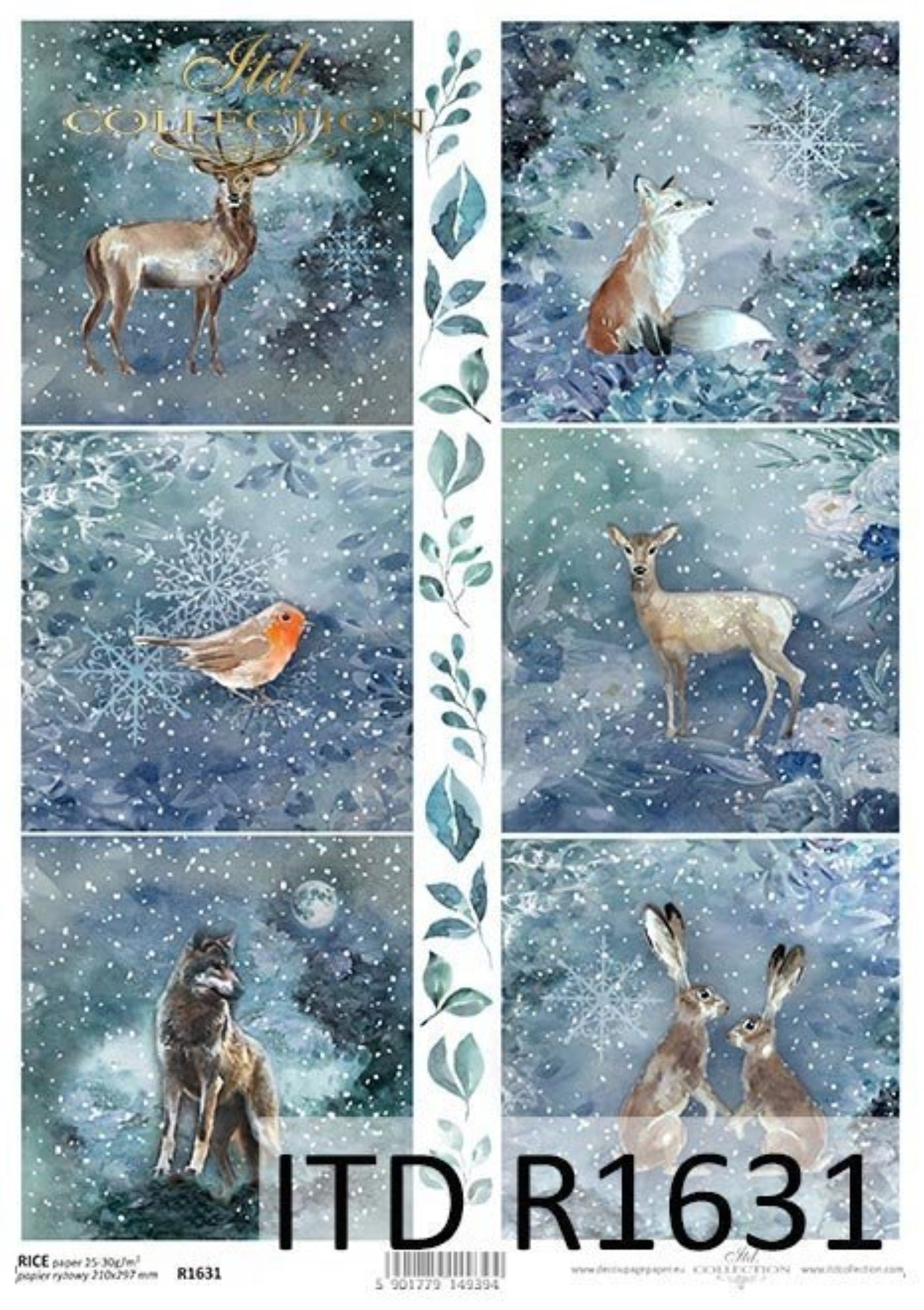 ITD Collection Rice Paper for Decoupage R1631 Size A4 - 210x297 mm, 8.27x11.7 inch Christmas, winter forest animals, blue Snow, Deer
