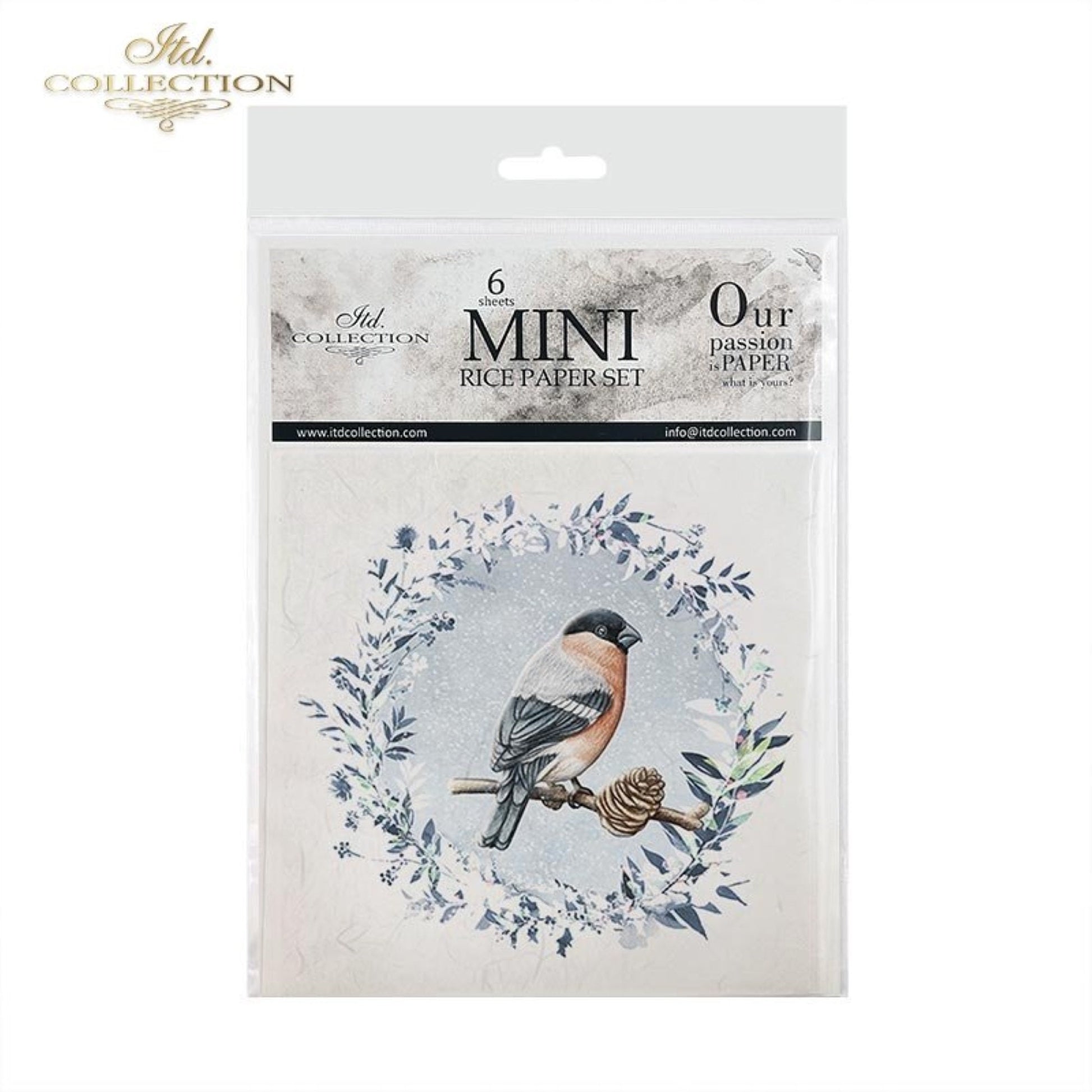 ITD Collection Rice Paper Mini Set for Decoupage RSM049, 6 sheets of rice paper 14,8x14,8 cm, ice, snow, winter birds, Christmas wreaths