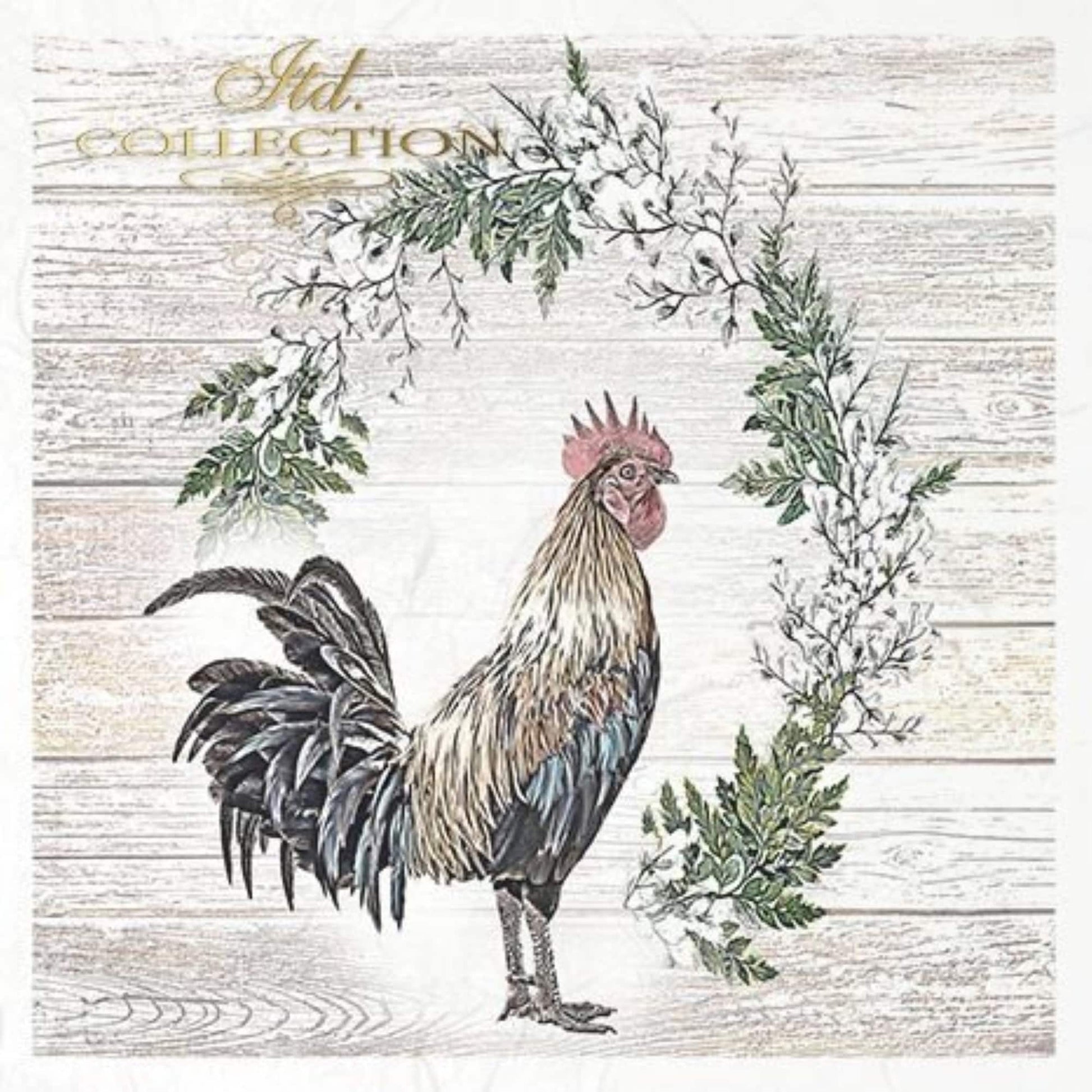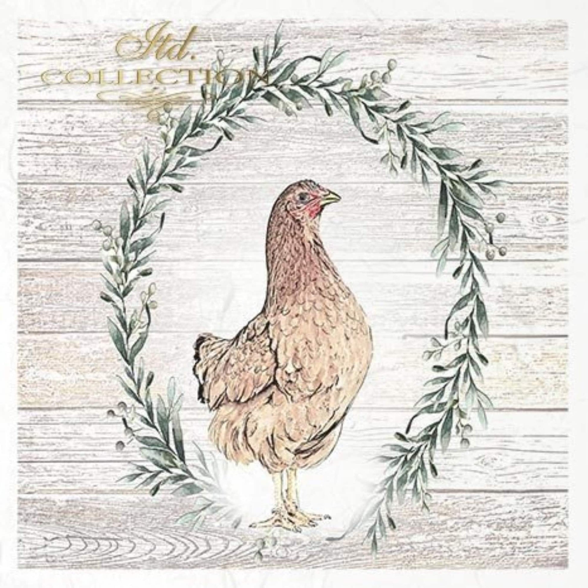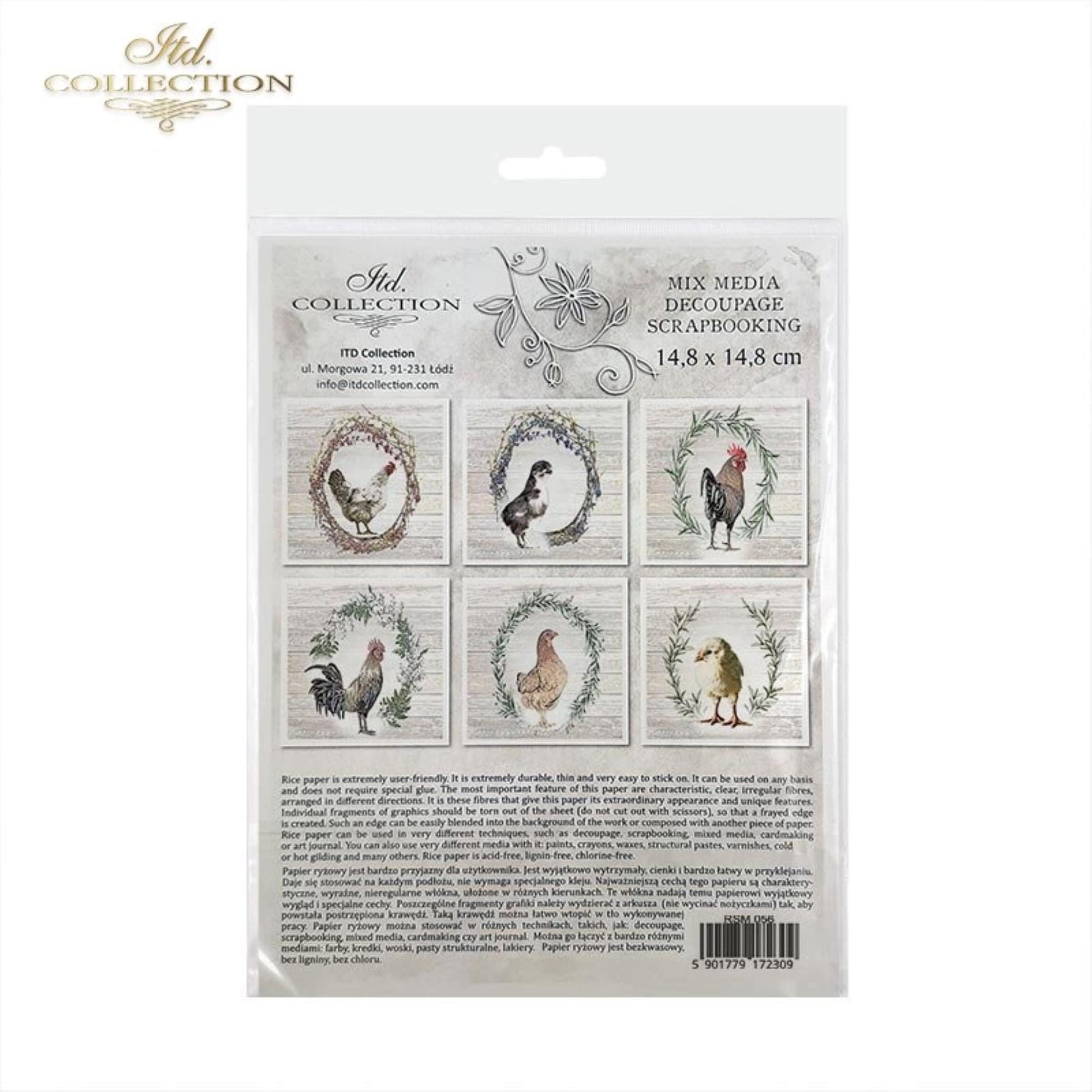 ITD Collection Rice Paper Mini Set for Decoupage RSM056, 6 sheets of rice paper 14,8x14,8 cm, hens and roosters, Wreaths, Farm Animals