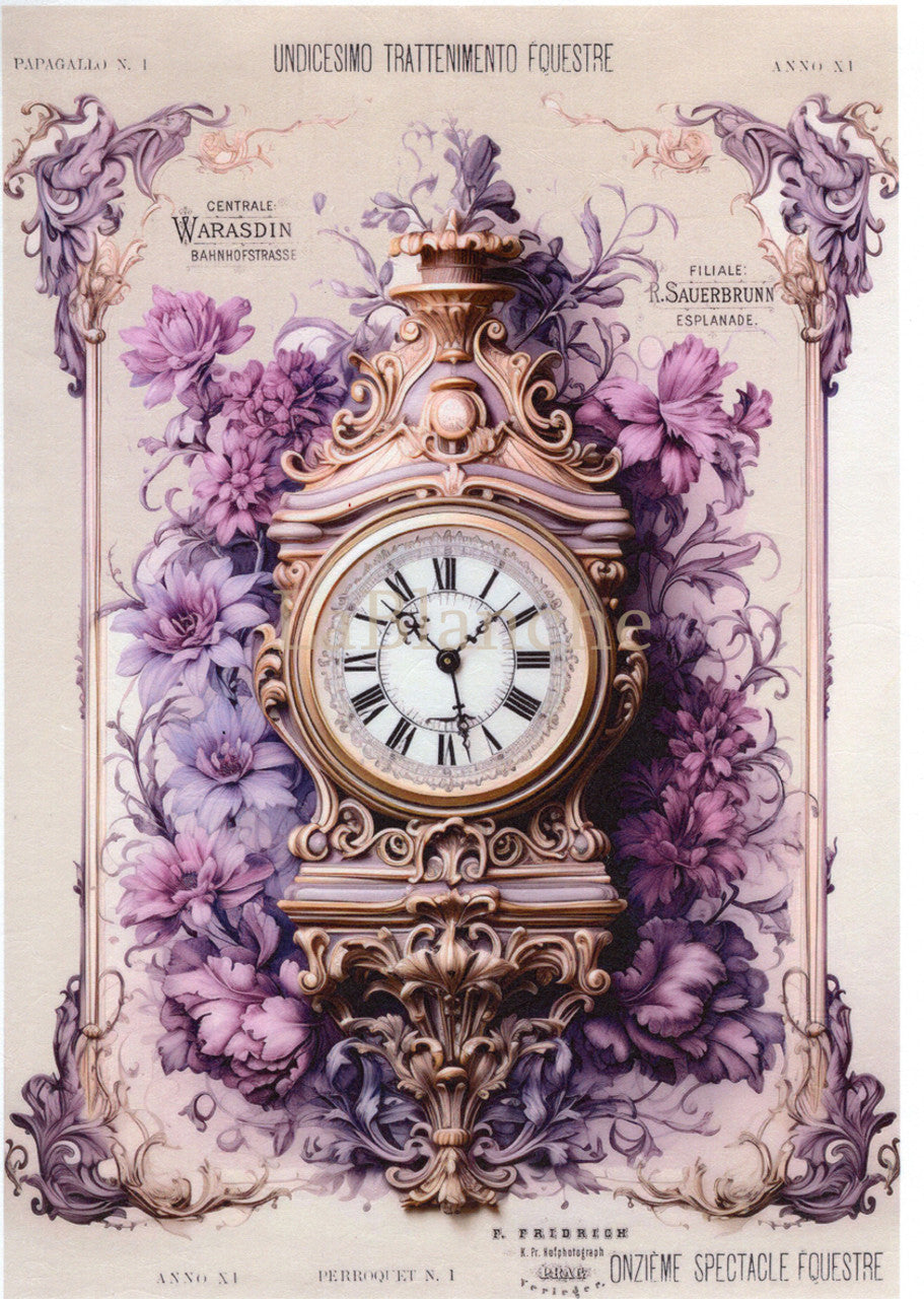 LaBlanche, 2024 Winter Release, Rice Paper, Vintage Style, Purple, Clock, Shabby Chic, LBD383, A4 8.27 X 11.69 in