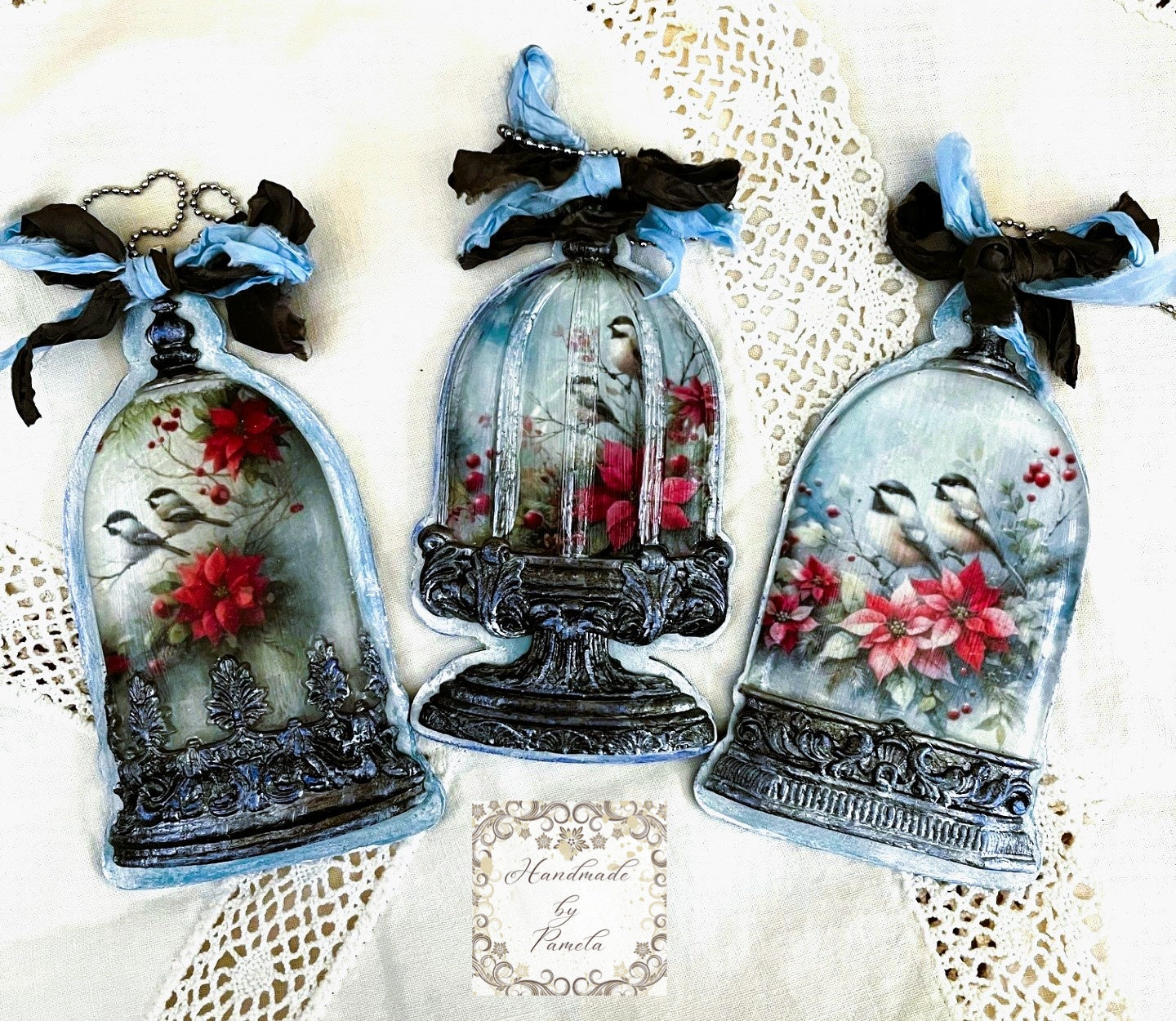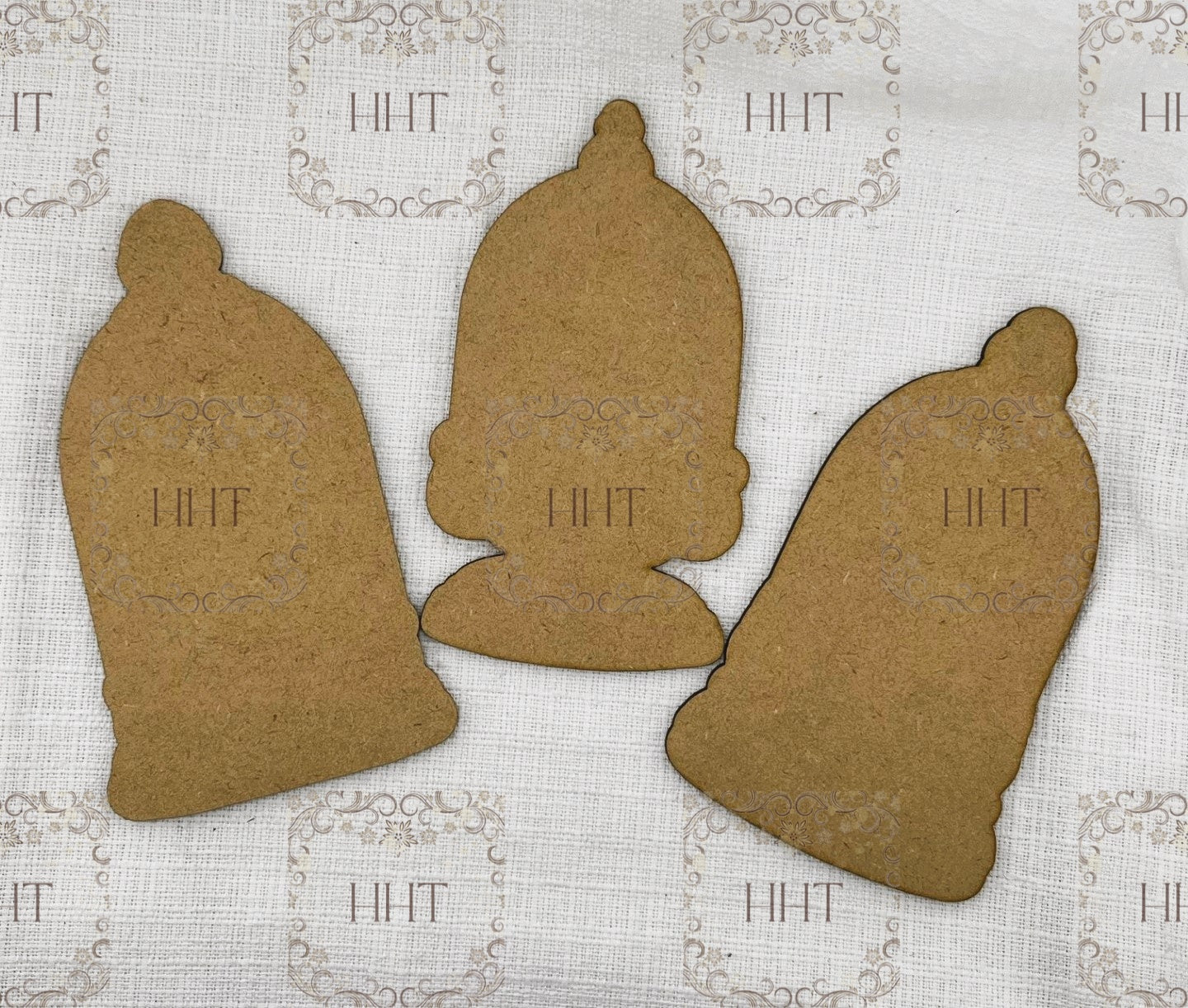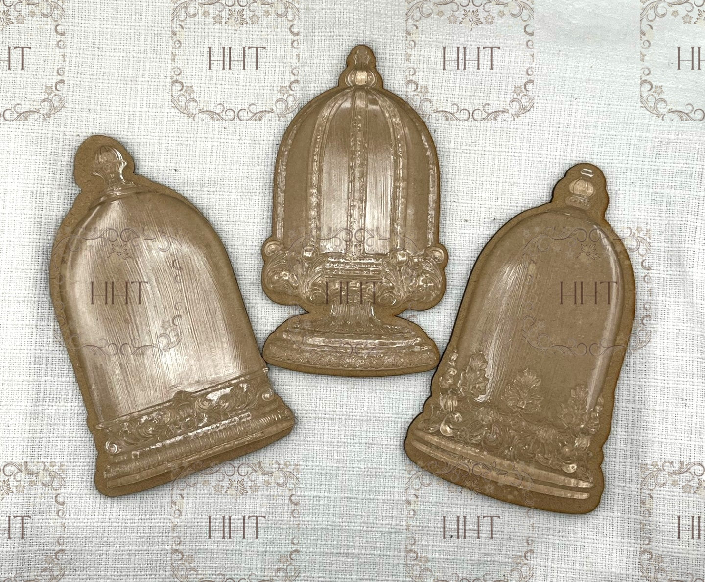 Handcrafted Holiday Traditions presents a Laser cut 1/8-inch thick MDF blank base ornament customized to back the IOD Cloche castings set of 3. They measure 3.5" x 5.75" - 6" high, 1/8" thick.