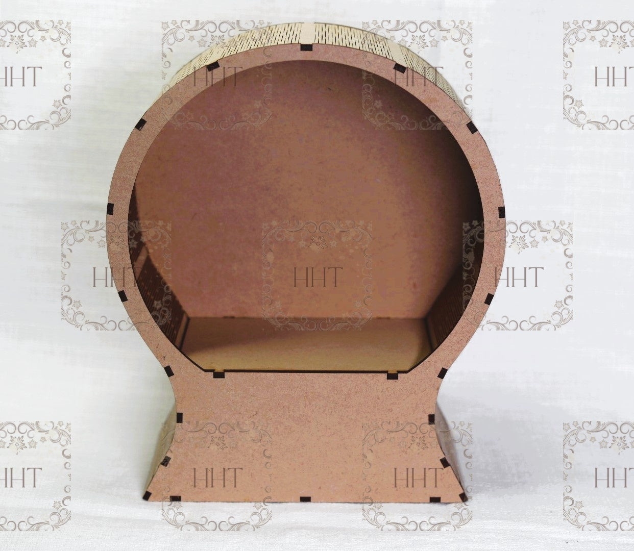 Handcrafted Holiday Traditions presents a buildable Laser Cut, MDF Globe style Shadow Box buildable Kit for crafts, decoupage and mixed media. This piece has lots of smooth blank surfaces and a large round opening for you personal artistic expression.