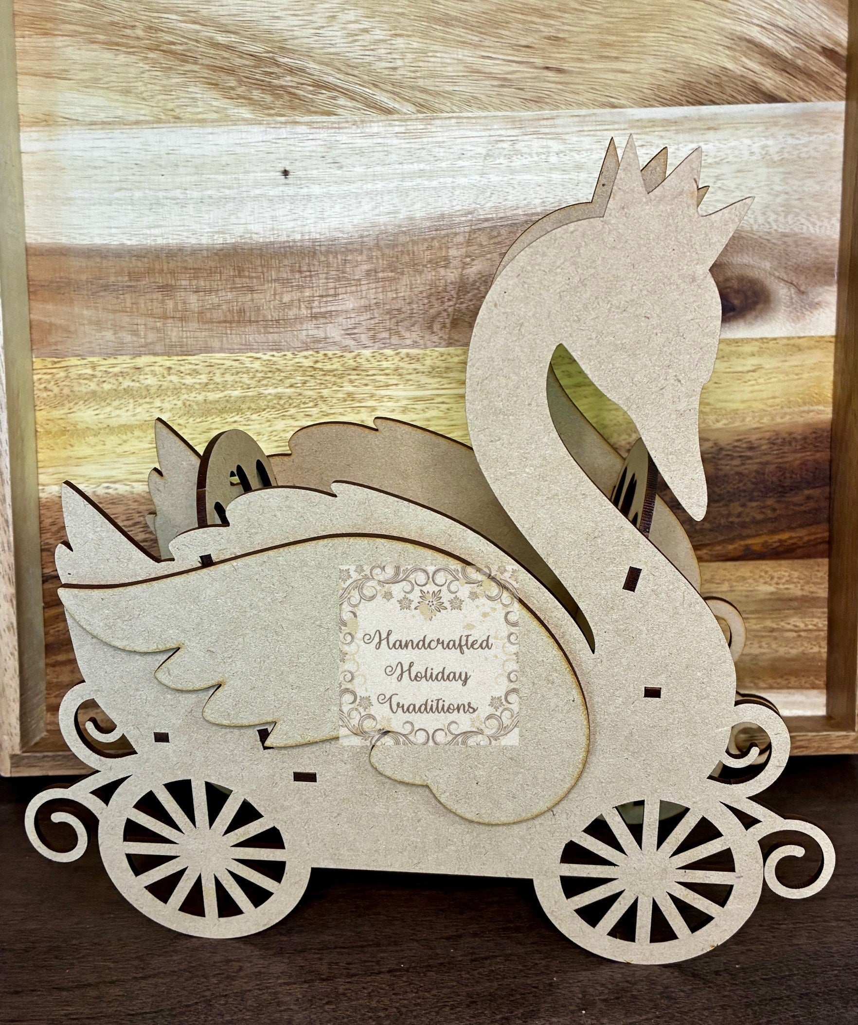 Laser Cut, MDF, Buildable, Swan, Princess, Chariot, Carriage, Blank, Base, Decoupage, Mixed Media, Crafts, 10"w x 9 1/2"h x 3 1/4"d