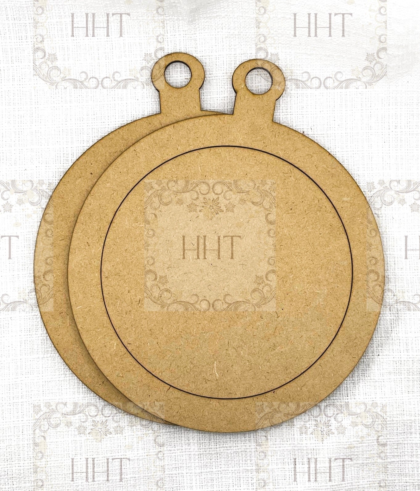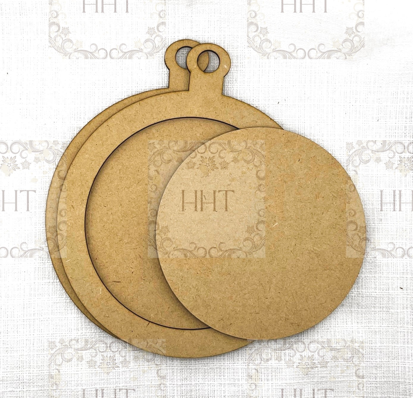 Laser Cut, MDF, Giant Round, Framed, Christmas, Holiday, Ornament, Base Blank, 3 pc, Decoupage, Crafts, Mixed Media, Home decor, 7" diameter