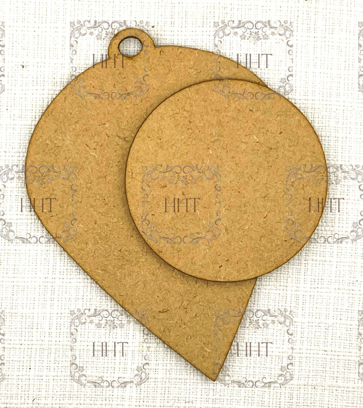 Laser Cut MDF, Christmas, Ornament, Base, Blank with center overlay Circle, 2 piece for Decoupage Mixed Media 4" X 5 1/2" 1/8 inch thick