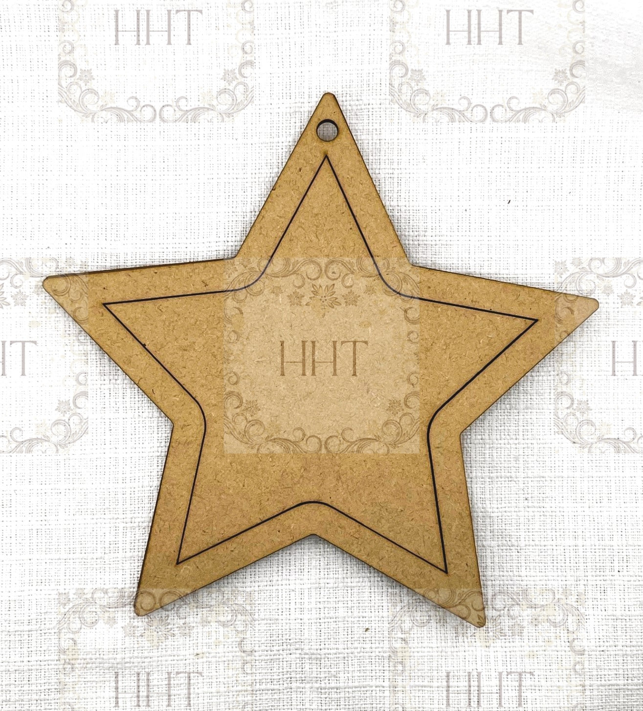 Handcrafted Holiday Traditions presents a Laser Cut MDF framed Star ornament blank base for Decoupage, Mixed Media and crafts. This ornament has lots of smooth blank surfaces for you artistic expression.