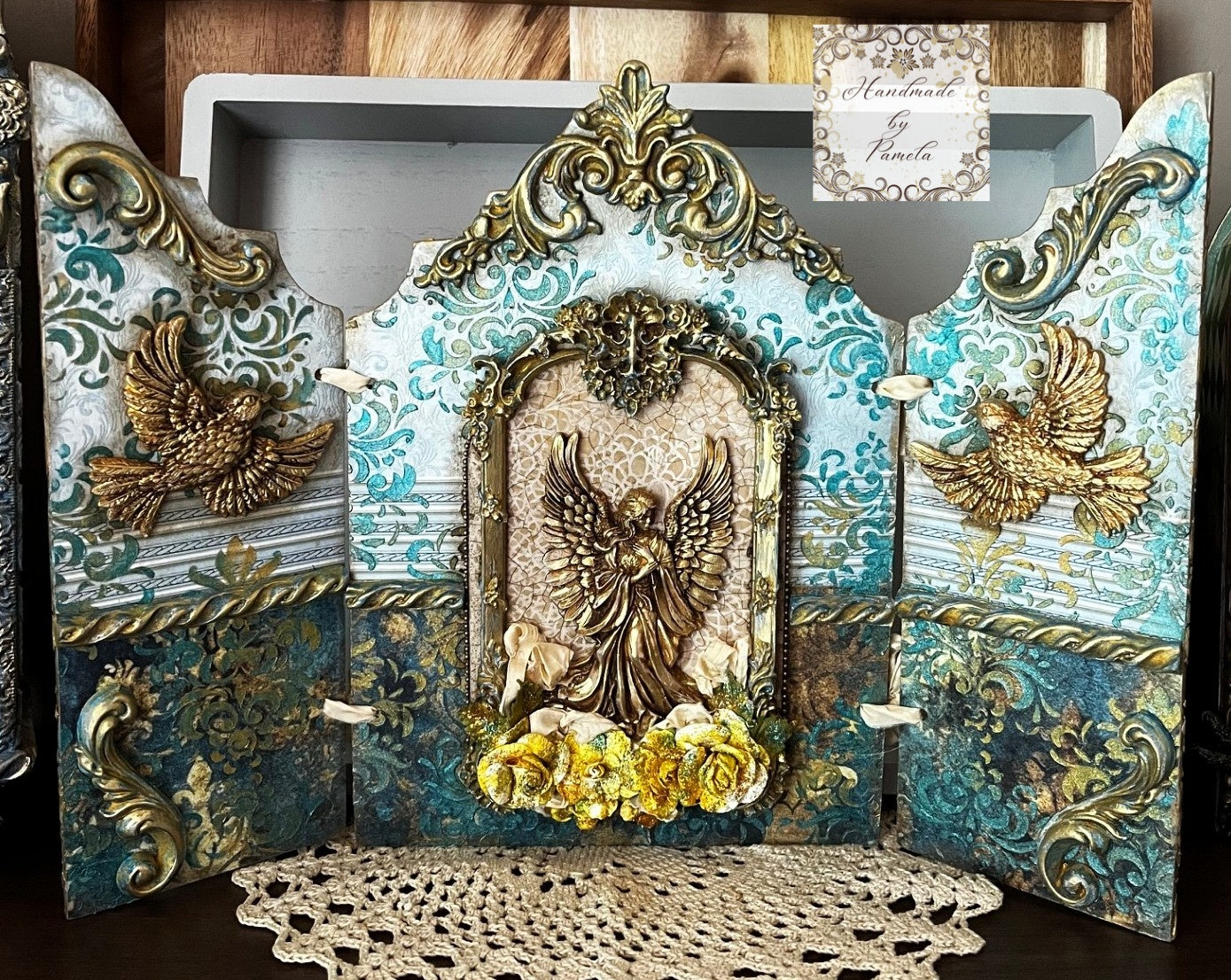 Handcrafted Holiday Traditions presents a Laser Cut MDF Vintage Style 3 piece table top Screen, blank base for creative uses withy decoupage and mixed media.