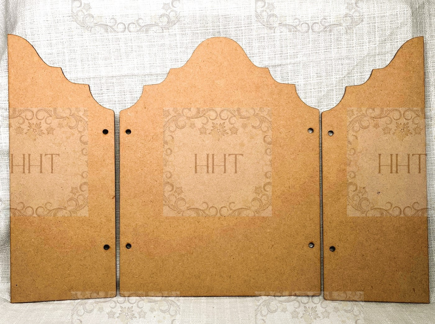Laser Cut, MDF, Vintage Style, 3 piece, Triptych, Table Top, Screen, Base, Blank, Plaque, Panel, Decoupage, Mixed Media, Crafts, 2 sizes