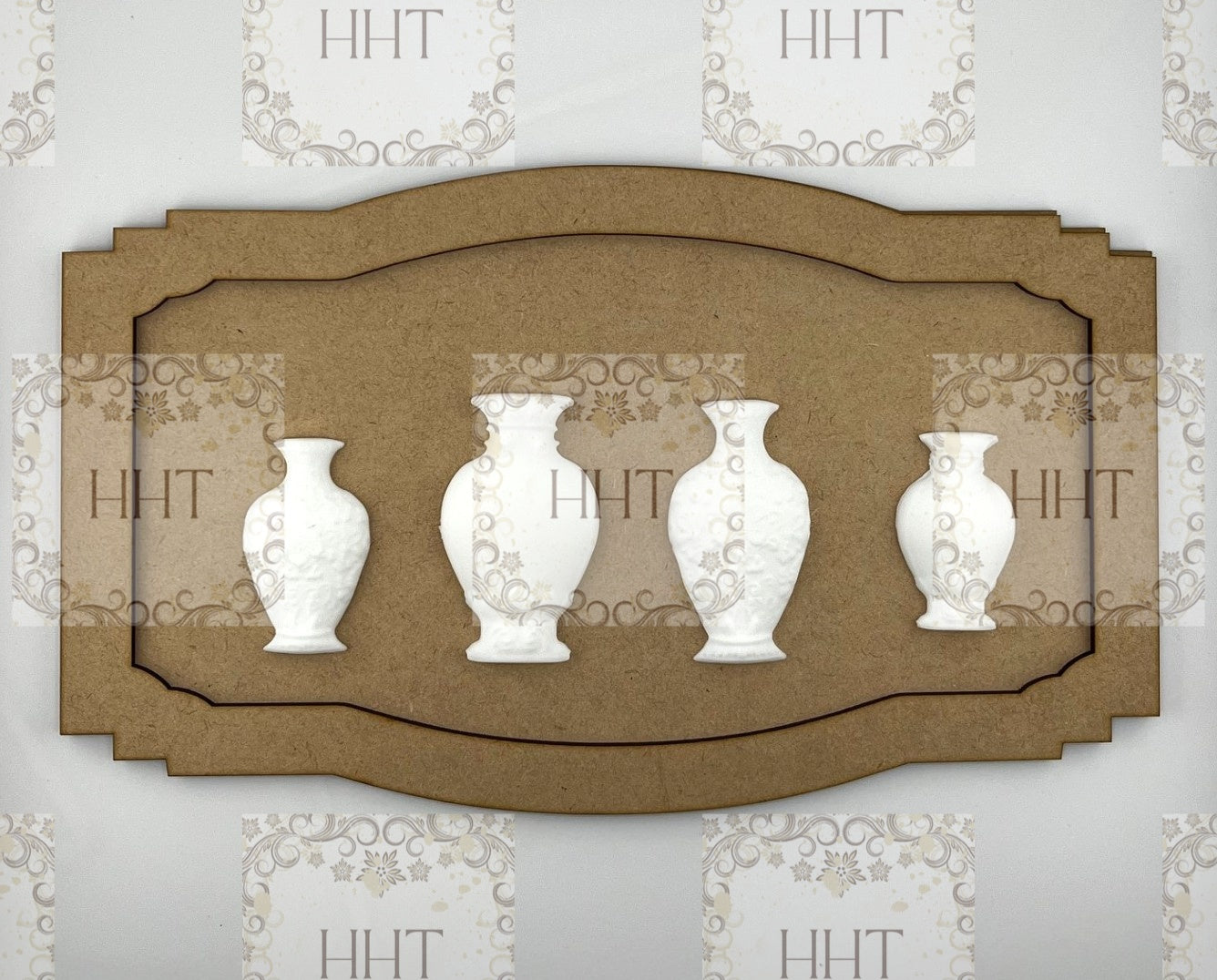Handcrafted Holiday Traditions presents a vintage style laser cut MDF framed panel blank base panel, 2 pieces. This piece was designed to accommodate the popular vases casting made using the 2025 release *Lablanch mold, (pictured). Panel does not include casting.