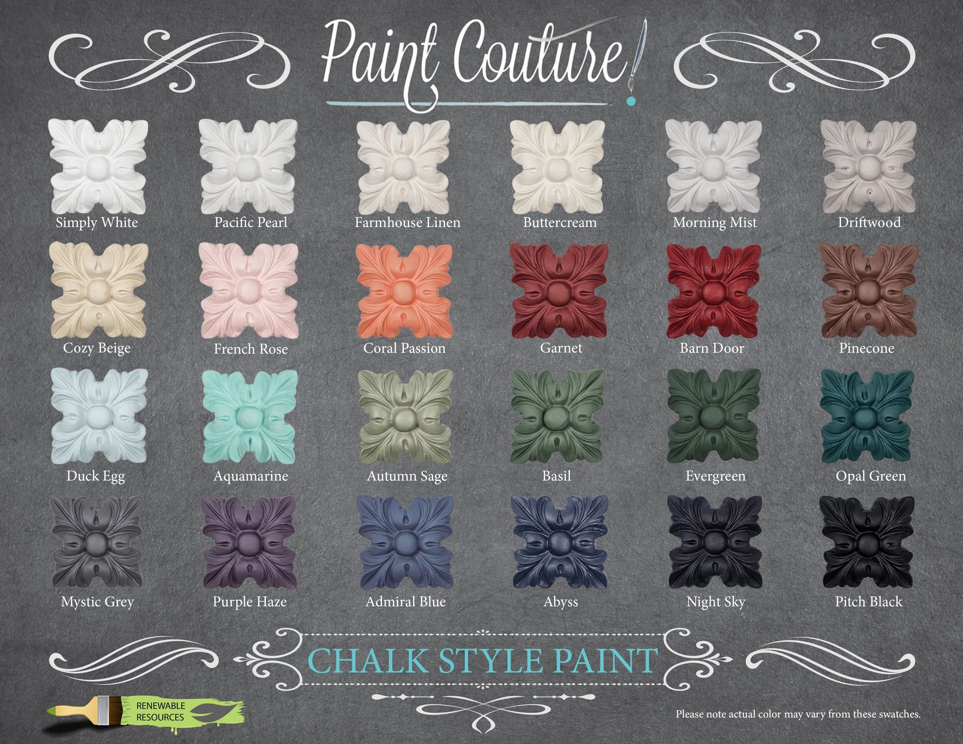 Paint Couture Chalk Style Paint products come in six unique sizes and 24 beautifully curated colors.