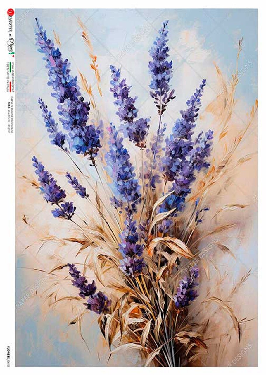Paper Designs, 2023 Winter Release, Springs of Lavender, Shabby chic, vintage style, Size: A4 8.3" X 11.7" Rice Paper for Decoupage.