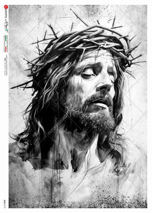 Paper Designs, 2024 Release, It is Finished, Jesus, Crown of Thorns, Black, White, Rice Paper, Decoupage, Mixed Media, 0179, A4 8.3 X 11.7