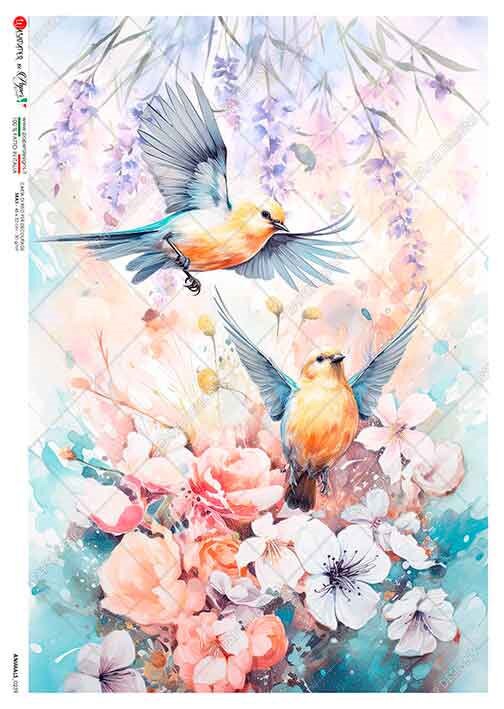 Paper Designs, 2024 Spring Release, Floral Flying Birds, Water Color, Rice Paper, Decoupage, Mixed Media, 0239 A4 8.3" X 11.7"