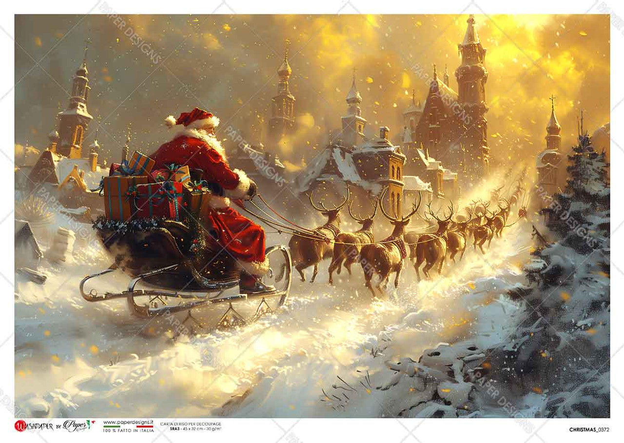 Paper Designs, Rice Paper, 2024 Release, Christmas, Victorian, Santa Claus, Reindeer, Sleigh, 0372, A4, 8.3" X 11.7" Decoupage, Mixed Media