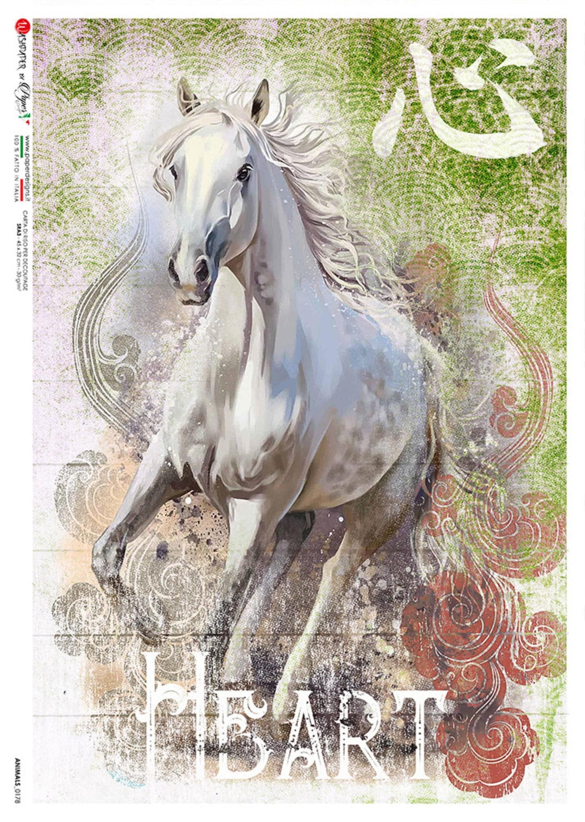 Paper Designs White Horse Animals 0178-A4 Size: A4 - 8.3" X 11.7" Rice Paper for Decoupage.