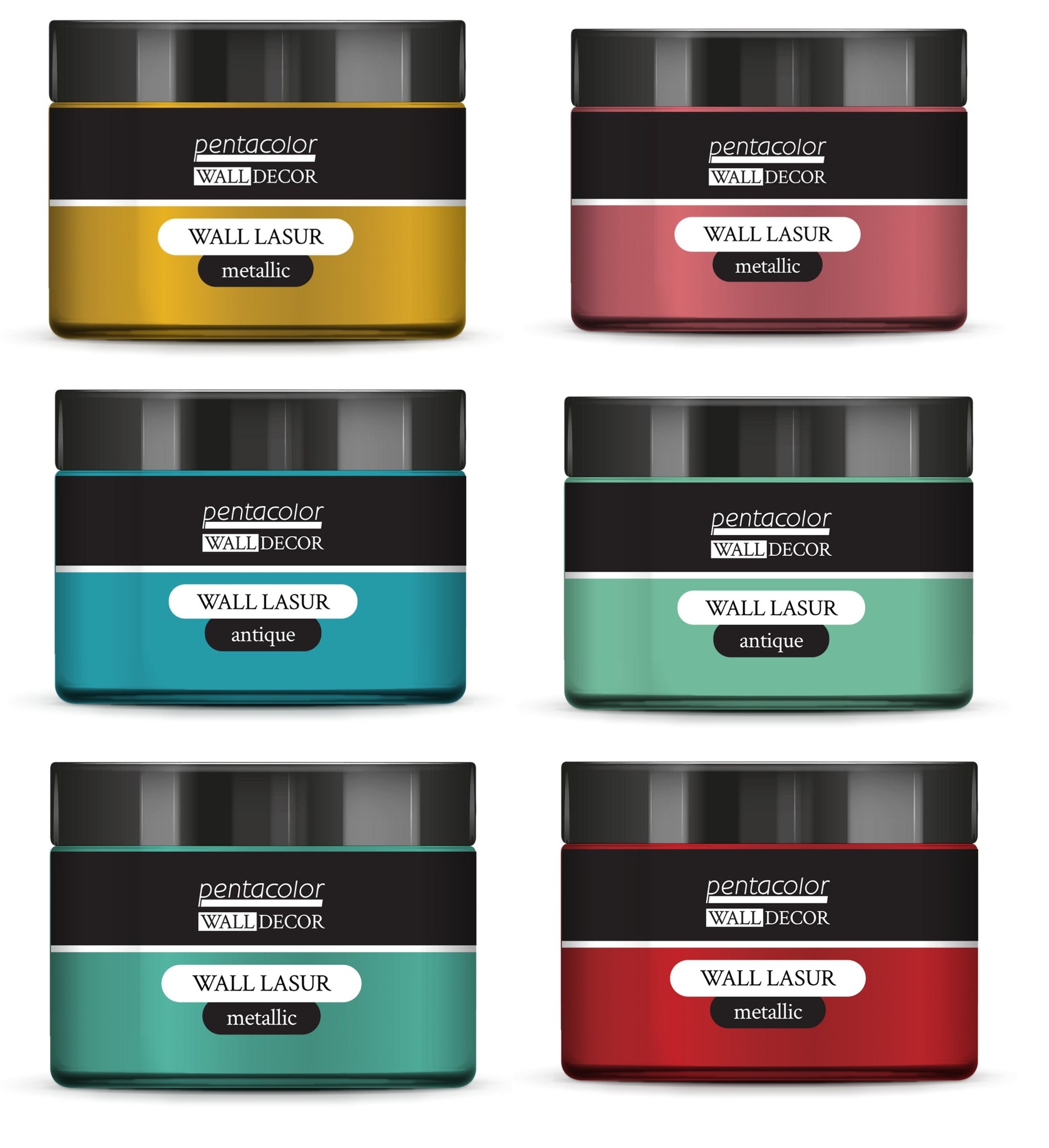 Pentart, Wall Lasur, Metallic, Antique, Gel, 150 ml, Patina Blue and Green, Blue-gold, Gold, Pearl Rose, Red Copper